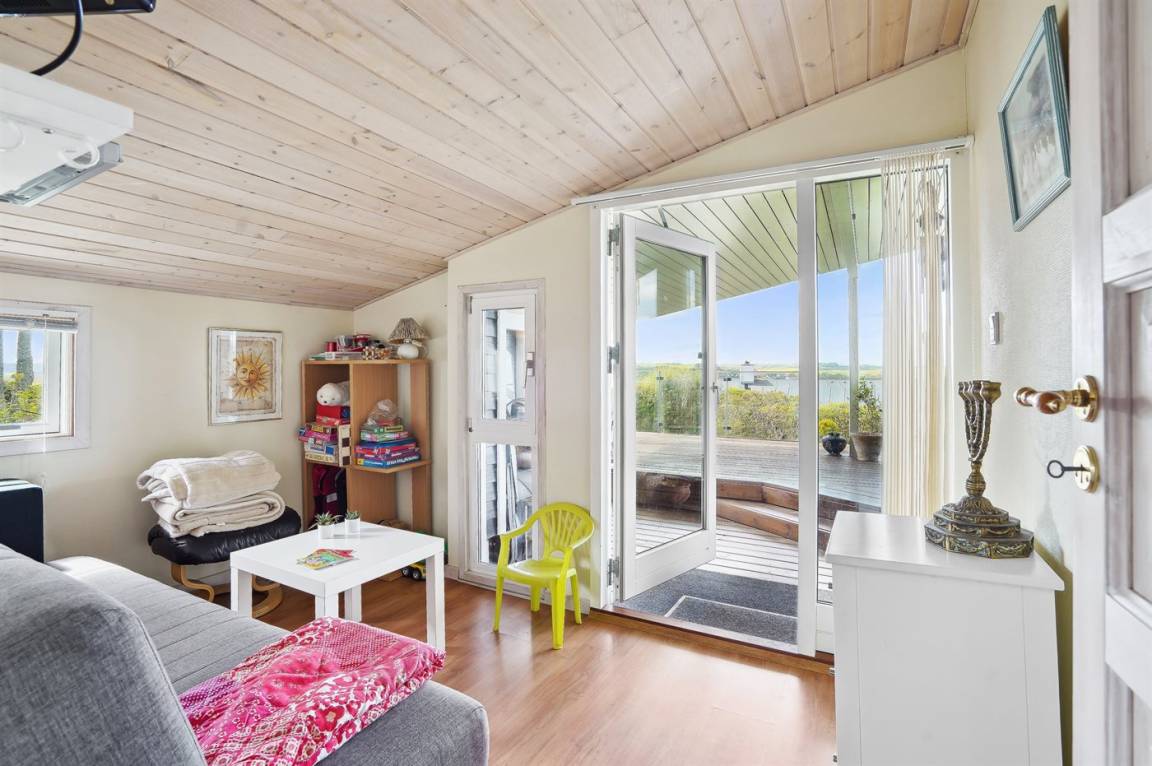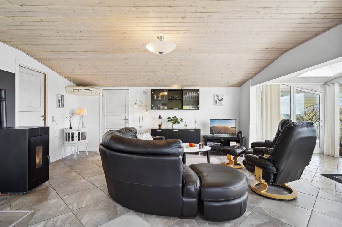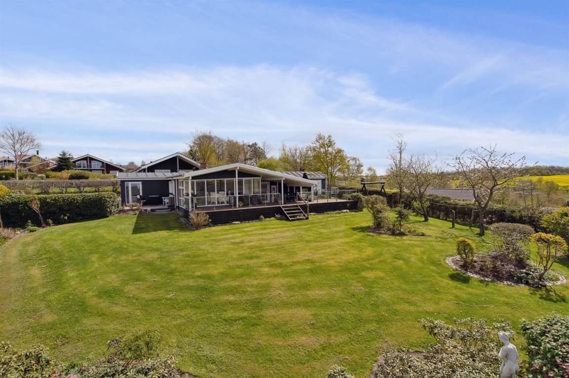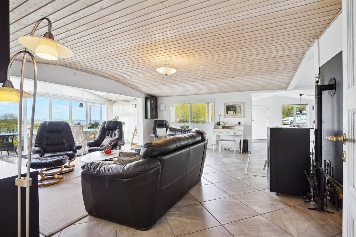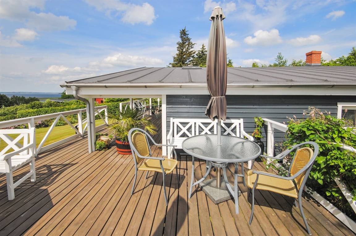 DraußenDie Ferienunterkunft liegt auf einem 1600 m² großen Gartengrundstück. Die Entfernung zum Fjord beträgt 300 m. Die nächste Einkaufsmöglichkeit liegt 3000 m entfernt. Es steht ein 60 m² Terrassenareal zur Verfügung. Außerdem gibt es 40 m² überdachte Terrasse. Schaukel. Sandkasten. Parkplatz auf dem Grundstück.