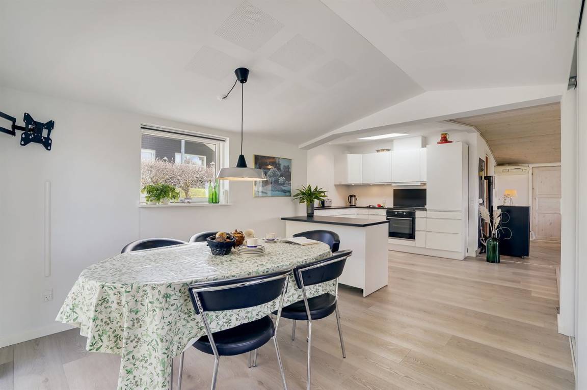 Dieses nett eingerichtete Ferienhaus liegt mit schönem Ausblick auf den Hjarbæk Fjord. Das Haus liegt auf einem schönen Gartengrundstück mit guten Spielmöglichkeiten für die Kinder. Ferner steht eine schöne Terrasse zur Verfügung, von der aus Sie den Ausblick auf den Fjord und über das Grundstück genießen können.