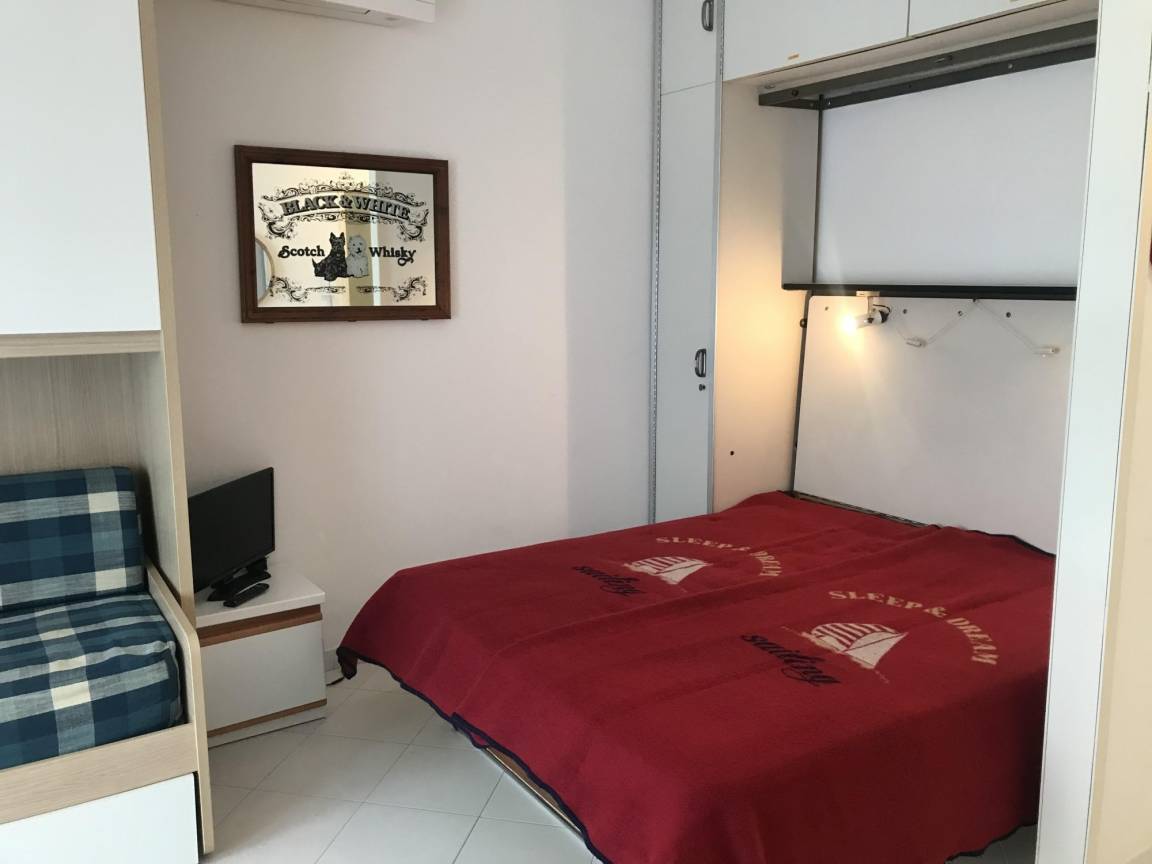 Das Studio-Apartment befindet sich im 14. Stock. Es verfügt über eine separate Küchenzeile mit kleinen Balkon ein Wohnzimmer mit einem ausziehbaren Doppelschlafsofa und einem Doppelbett, das sich in einen Kleiderschrank verwandeln lässt, sowie ein Badezimmer. Zur Ausstattung gehören Klimaanlage, Fernseher und Waschmaschine