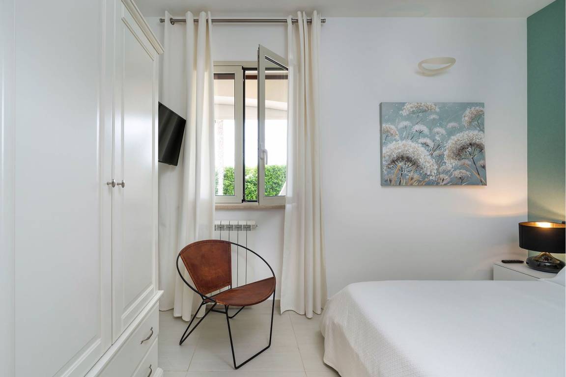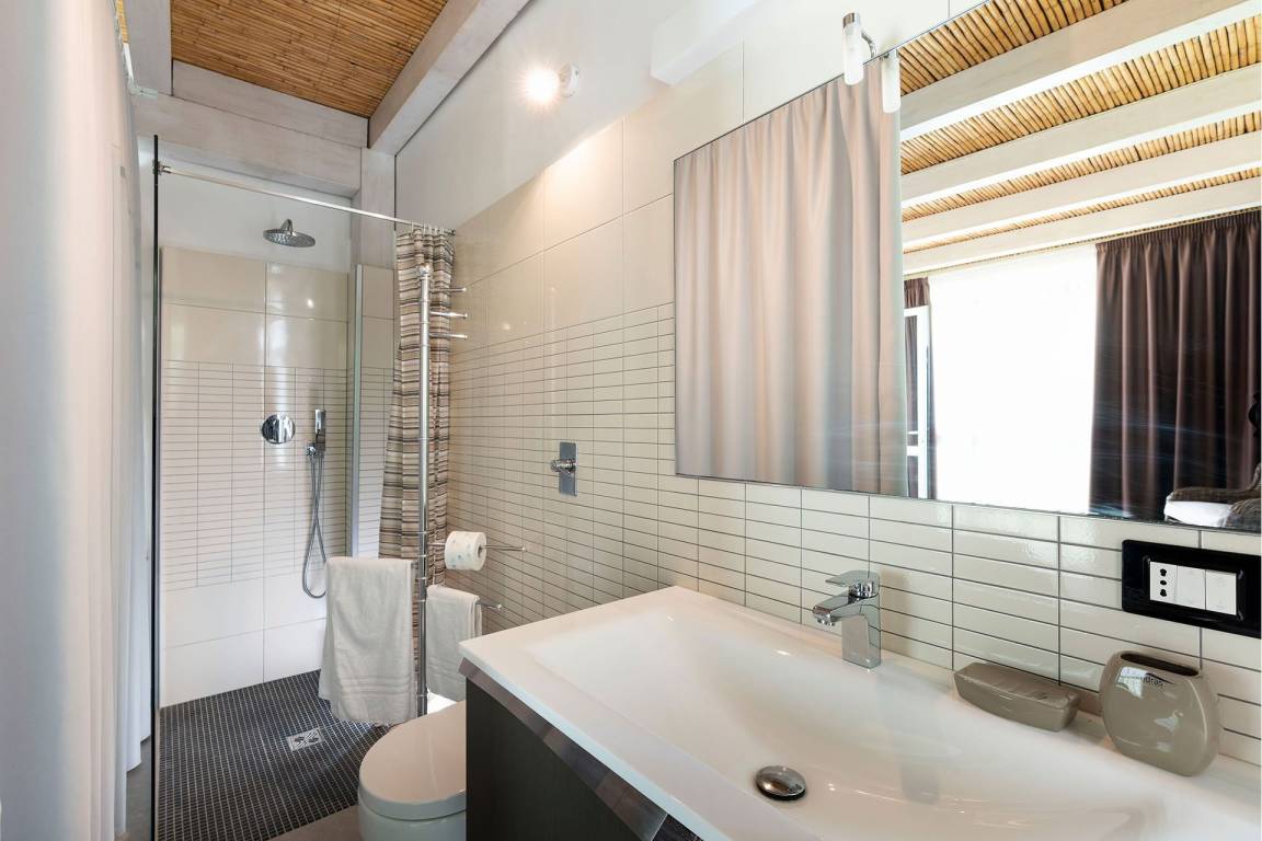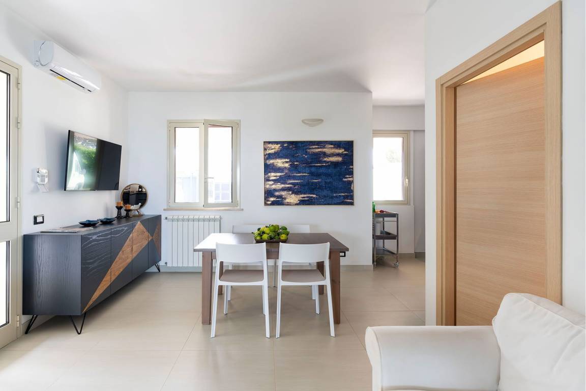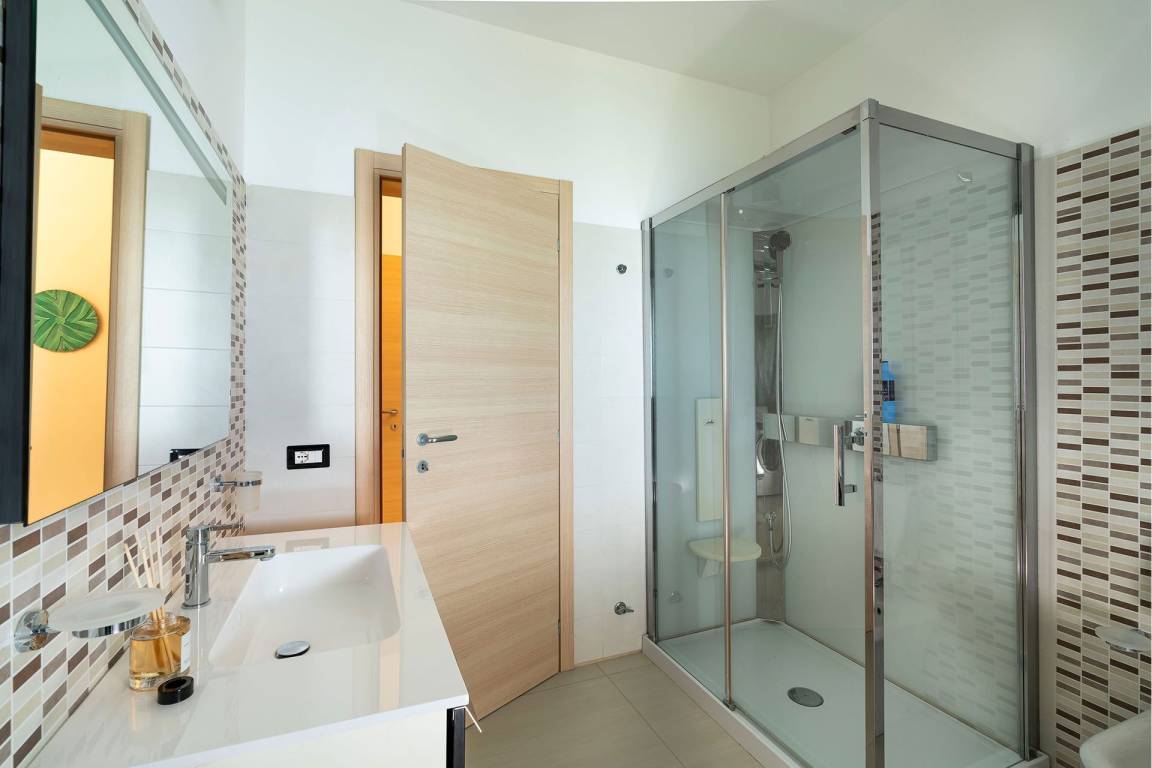 Die Villa umfasst insgesamt drei Ebenen und bietet Platz für bis zu 6 Gäste in 3 Schlafzimmern und 3 Bädern. Im Erdgeschoss befinden sich der Wohn- und Essbereich in offener Gestaltung, der direkt in die vollständig ausgestattete Küche übergeht, sowie ein Bad für Gäste, die sich in den Gemeinschaftsbereichen aufhalten. In den oberen Geschossen sind die 3 Schlafzimmer verteilt, um maximale Privatsphäre und Lichtzufuhr zu gewährleisten; jedes Schlafzimmer ist mit sorgfältig ausgewählten Betten und ausreichend Stauraum ausgestattet. Die 3 Bäder der Villa sind elegant ausgestattet und mit hochwertigen Armaturen versehen.
