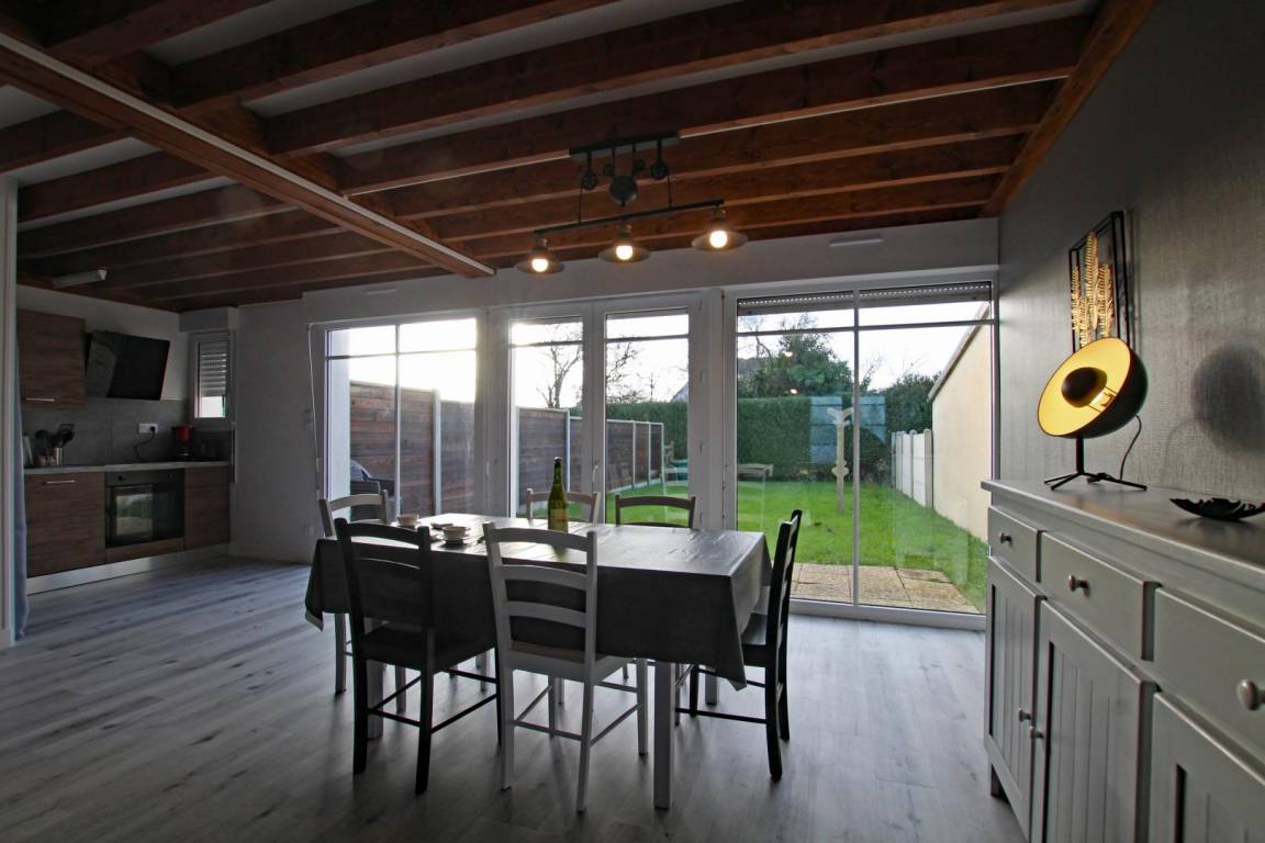 Haus, das an eine andere Mietunterkunft angrenzt. Erdgeschoss: Wohnzimmer (TV), Doppelschlafcouch. Offene Küche (Cerankochfeld, Backofen, Dunstabzugshaube, Mikrowelle, Kühlschrank mit Gefrierfach, Geschirrspüler). Duschraum mit Waschmaschine. Separates WC. Obergeschoss: Mezzanine (1 Doppelschlafcouch). Schlafzimmer 1 (1 Bett 140x190). Schlafzimmer 2 (2 Betten 90x190). Abstellraum. Babyausstattung auf Anfrage. Bettwäsche und Haushaltswäsche nicht vorhanden. Elektroheizung gegen Aufpreis. Privates, eingezäuntes Grundstück. Terrasse. Gartenmöbel. 2 Liegestühle. Grill.