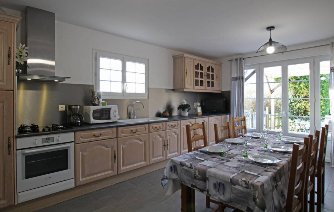 Freistehendes Haus. Wohnzimmer mit Küche. Aufenthaltsraum mit Holzofen (2 Körbe vorhanden). Duschraum. Toilette. Veranda. Badezimmer. Toilette. Ruheraum mit Tischfußball und Kinderspielen (Schlafsofa). Schlafzimmer 1 (2 Einzelbetten). Im Obergeschoss vom Wohnzimmer, Schlafzimmer 2 (1 Doppelbett) und Schlafzimmer 3 (1 Doppelbett und 1 Einzelbett). Babybett und Hochstuhl. Im Obergeschoss vom Wohnzimmer/Küche, Schlafzimmer 4 (160X200 Bett). Fernseher. WLAN-Internet. Waschmaschine. Geschirrspüler. Bettwäsche inklusive, gemachte Betten bei Ankunft. Handtücher inklusive. Optionaler Reinigungsservice. Elektroheizung inklusive. Alle Gebühren inklusive. Privates umzäuntes Grundstück mit überdachter Terrasse. Gartenmöbel. Grill. Unterstand. Privater umzäunter Hof. Parkplatz. Pétanque-Platz. 6 Fahrräder für Erwachsene und 2 Kinderfahrräder verfügbar. 2 Kajaks verfügbar.