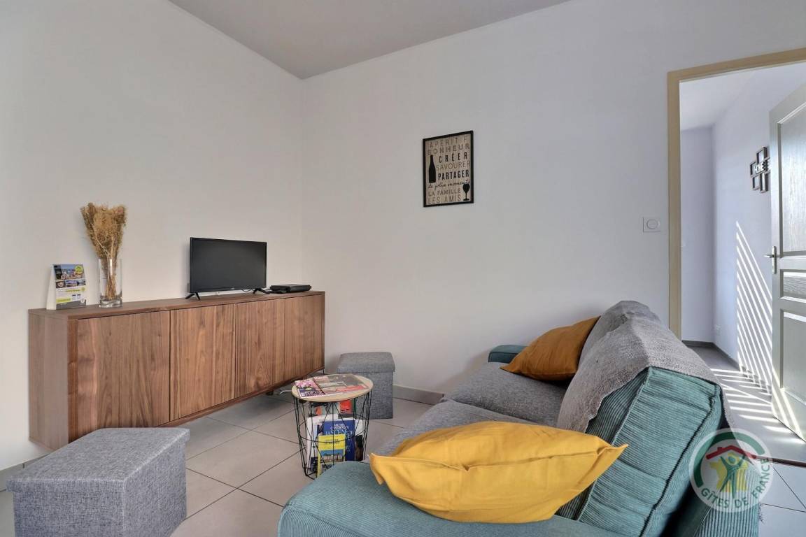Auf einer Ebene (mit einigen Innenstufen): ein Wohnzimmer mit Küche und ein Wohnzimmer mit Lounge, ein Schlafzimmer mit einem 160x200-Bett, ein Schlafzimmer mit zwei 90x200-Betten, ein Duschbad und ein separates WC. Einfaches und kostenloses Parken auf der Straße und in der Garage für ein kleines Auto. Außenbereich ab Ende Juni zugänglich.