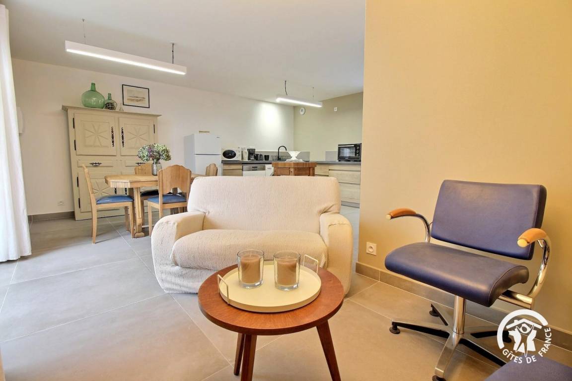 „Logement agréable, calme, neuf et tout confort. La vue est superbe. Logement situé à proximité du parc de Branféré, de Rochefort-en-terre et de La Gacilly. Propriétaire très sympathique et prévenante.“