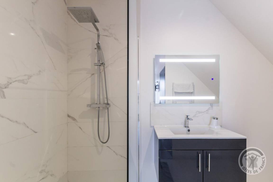 „Gîte très coquet idéalement situé entre Granville et Coutances, très proche de la mer (havre de la Vanlée).Rien ne manque, confort et équipement optimal, propriétaire très agréable. Le vrai plus: Le jacuzzi privatif extérieur, idéal au retour des longues balades sur la plage. Salle de bain très agréable et pièce à vivre lumineuse.“