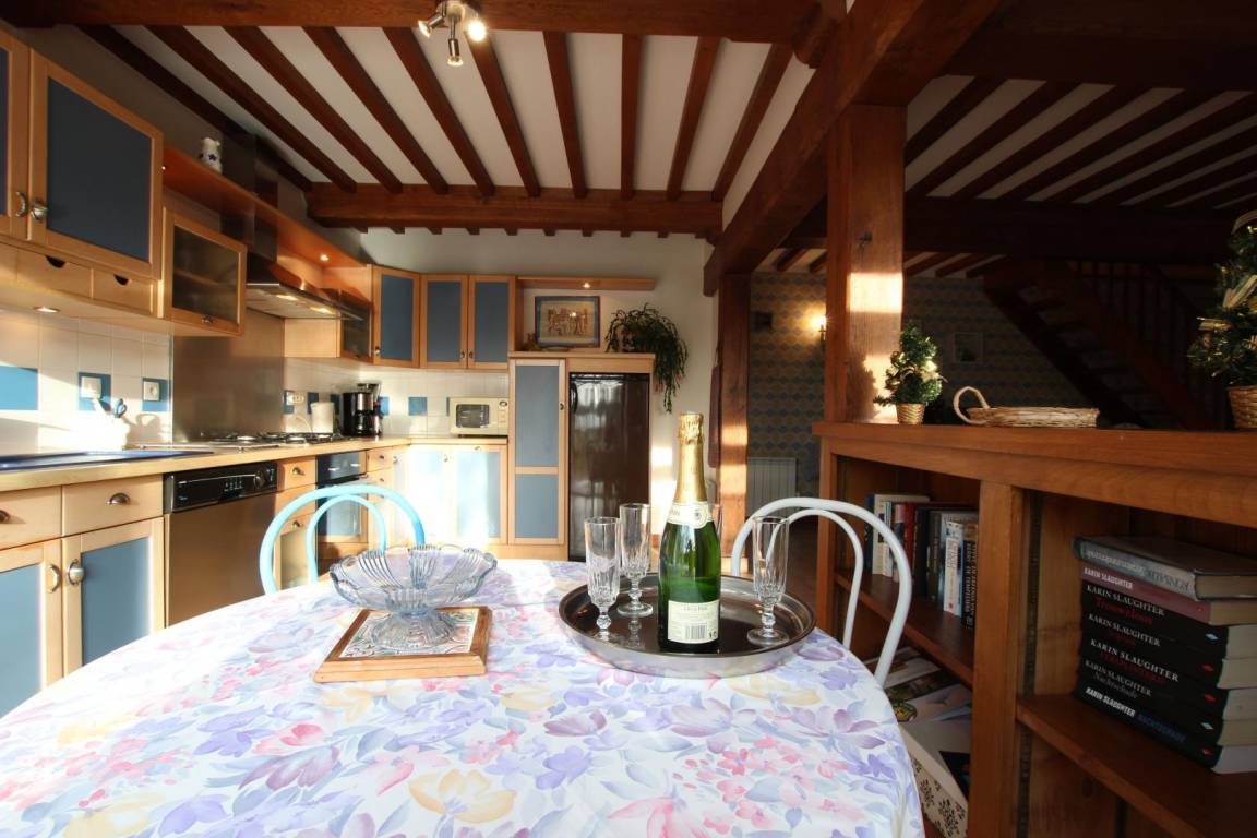 Doppelhaushälfte neben dem Haus des Eigentümers (keine Einsicht). Erdgeschoss: Offene Küche/Wohnzimmer. WC. Obergeschoss: Schlafzimmer 1 (1 Doppelbett 140x190 cm + 1 Kinderbett). Schlafzimmer 2 (1 Einzelbett 120x190 cm + 1 Kinderbett). Schlafzimmer 3 (2 Einzelbetten 90x190 cm). Duschbad. WC. Kamin (Holz vorhanden). Fernseher. WLAN. Geschirrspüler. Zugang zu einem großen Hauswirtschaftsraum (Waschmaschine). Bettwäsche und Haushaltswäsche können gemietet werden (Betten sind bei Ankunft bezogen). Babyausstattung (Hochstuhl, Wickelauflage, Treppenschutzgitter). Reinigungsservice gegen Aufpreis. Elektrische Heizung inklusive. Privater, nicht eingezäunter Garten. Gartenmöbel. Grill. Spielplatz. Ein Haustier erlaubt. Carport auf Anfrage.