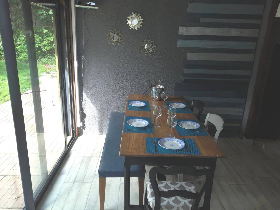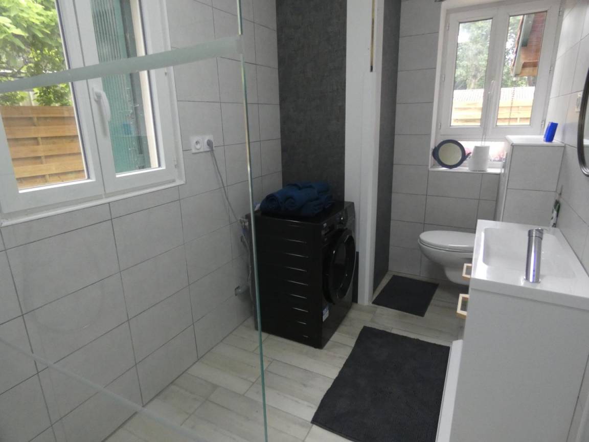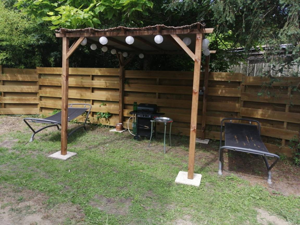 „The garden wasn't taken care off and so quite wild. Photo's of the 3rd room are misleading as it's only 1m50 high. Don't mention 3 rooms in the description. We missed storage location for our cloths. No possibility to dry our clothes except outside which was not possible due to bad weather. Airco, kitchen and electric window volet were good.“