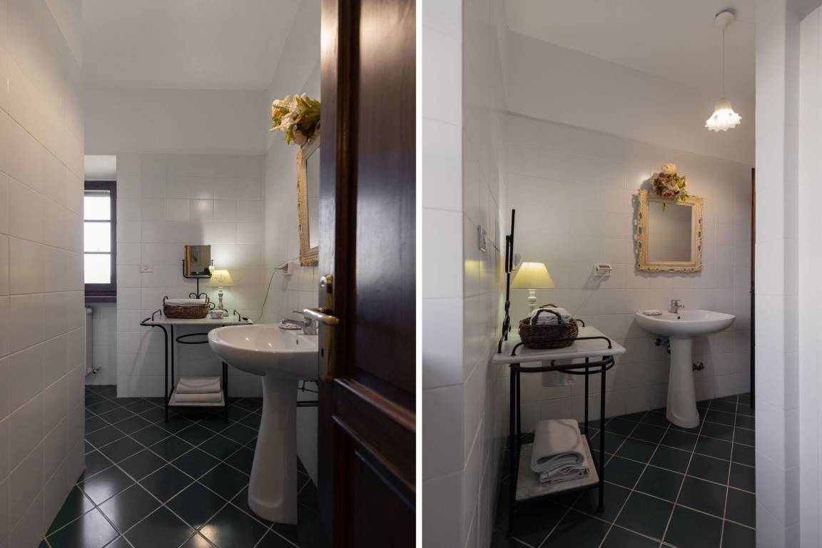 Badezimmer 4: Waschbecken, WC, Bidet, Dusche.