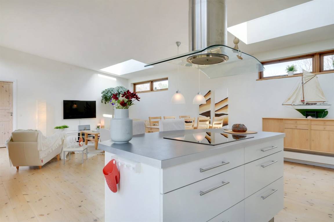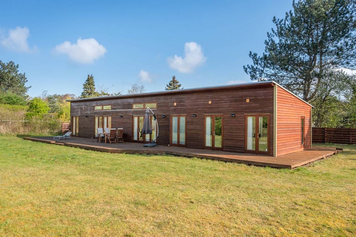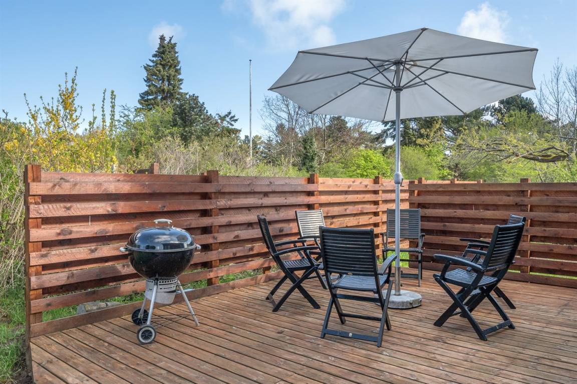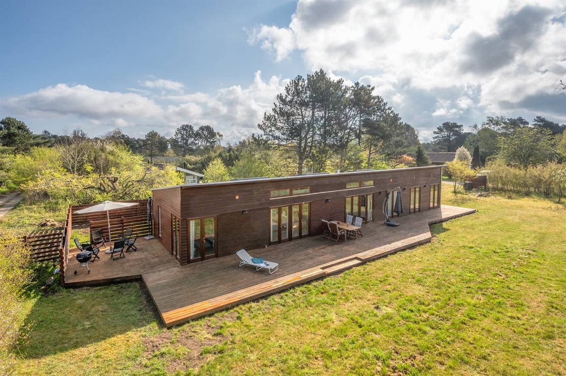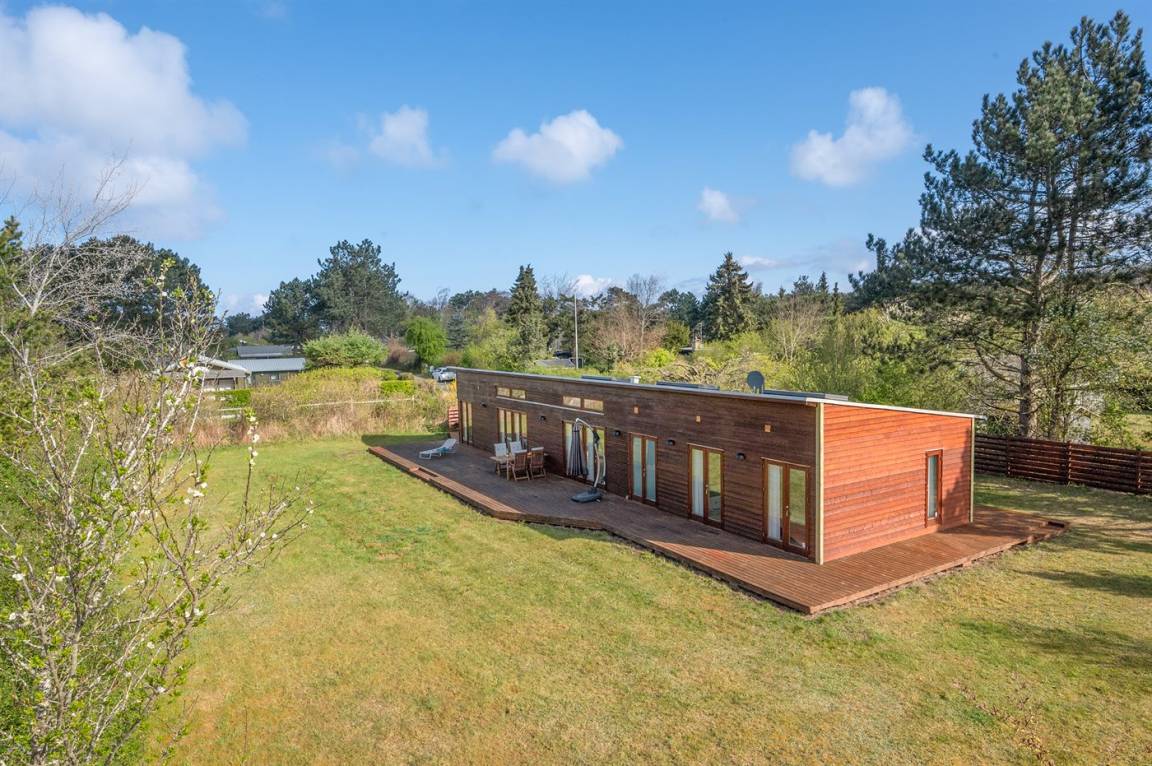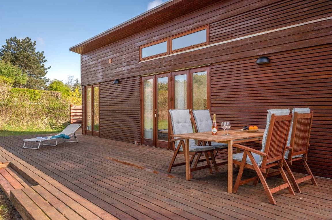 Hübsches, modernes und helles Ferienhaus mit einer großen Holzterrasse, die von allen Zimmern begehbar ist. Das Haus liegt in einer ruhigen Straße in Laufweite zum schönen Badestrand.