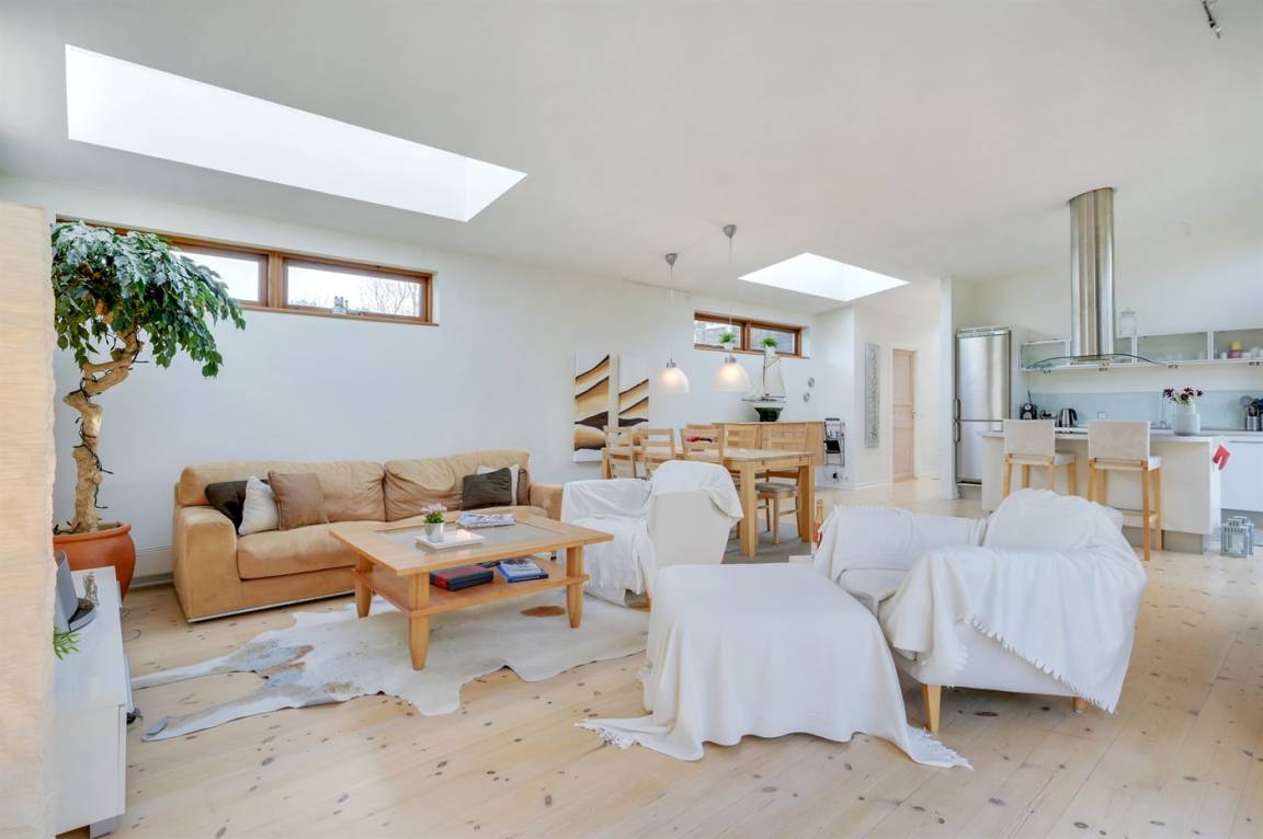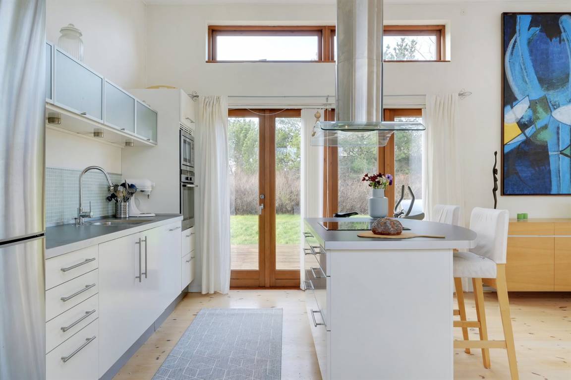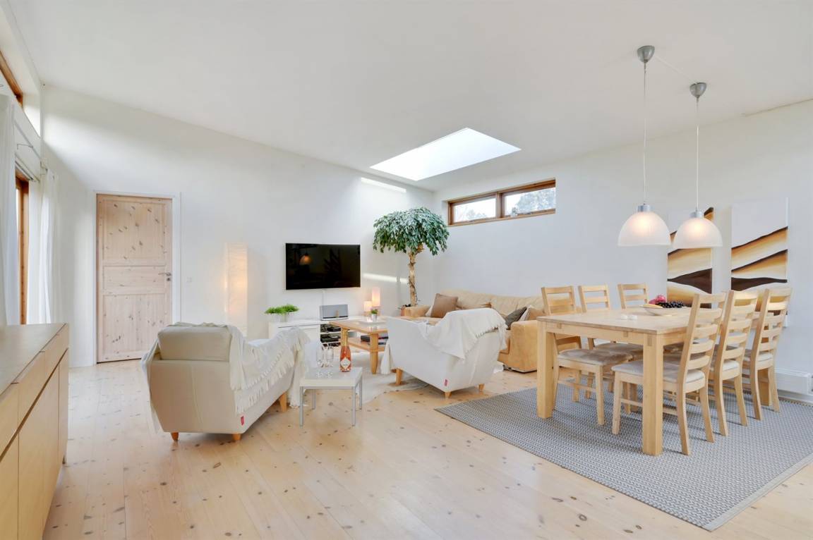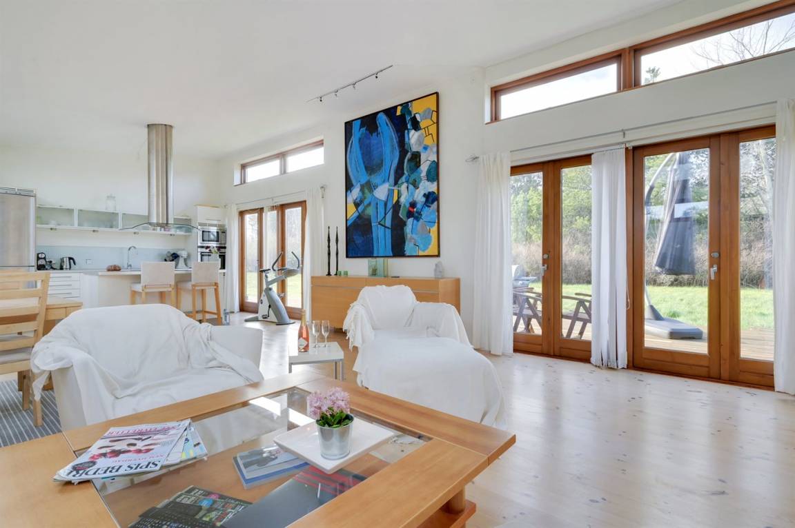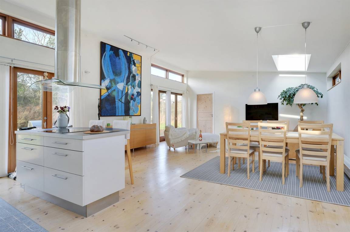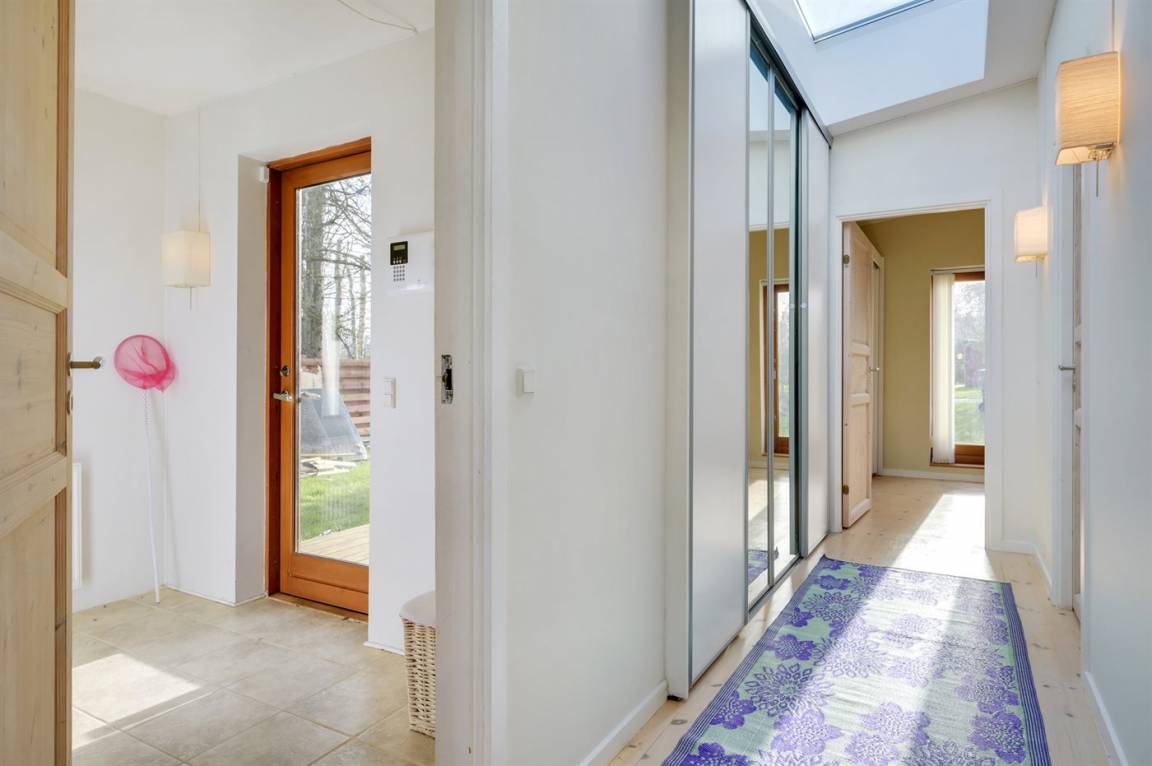 Hübsches, modernes und helles Ferienhaus mit einer großen Holzterrasse, die von allen Zimmern begehbar ist. Das Haus liegt in einer ruhigen Straße in Laufweite zum schönen Badestrand.