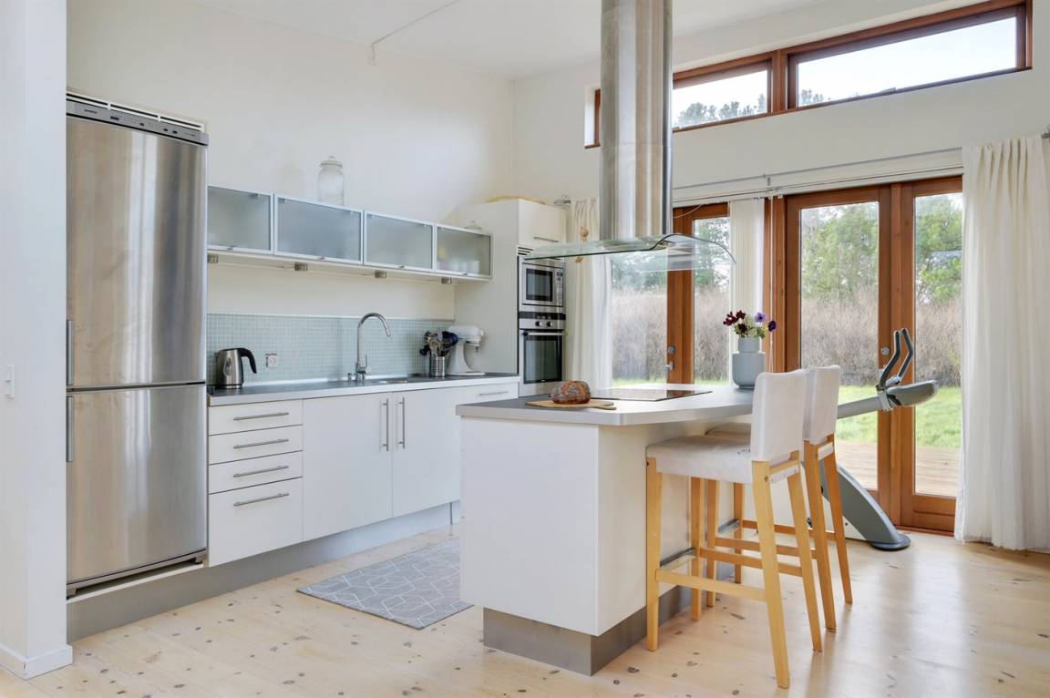 DraußenDie Ferienunterkunft liegt auf einem 1310 m² großen Gartengrundstück. Die Entfernung zum Meer beträgt 280 m. Die Entfernung zum Fjord beträgt 5500 m. Die Entfernung zu einem See beträgt 6500 m. Die nächste Einkaufsmöglichkeit liegt 2000 m entfernt. In einem Abstand von 5000 m gibt es einen Golfplatz. Es steht ein 200 m² Terrassenareal zur Verfügung. Parkplatz auf dem Grundstück.