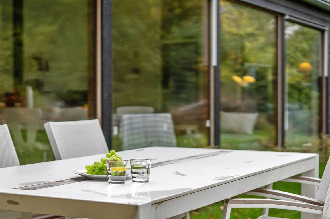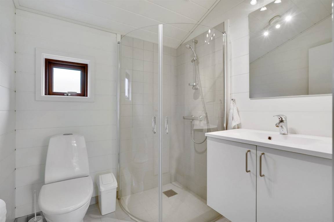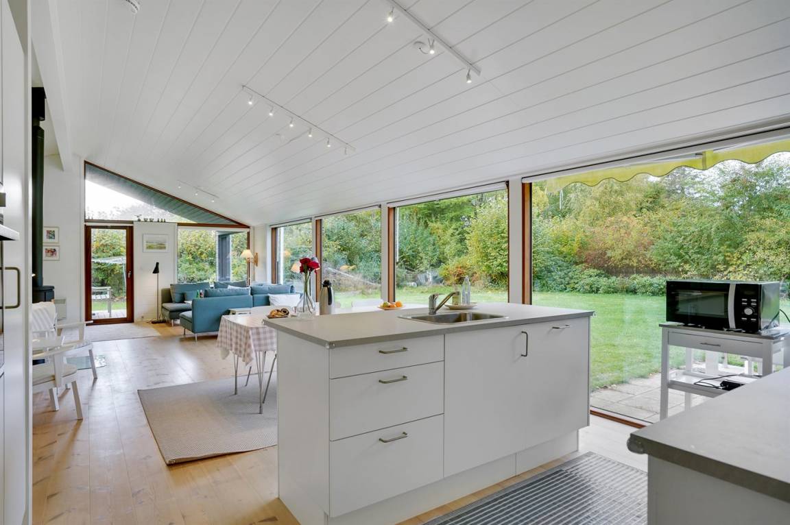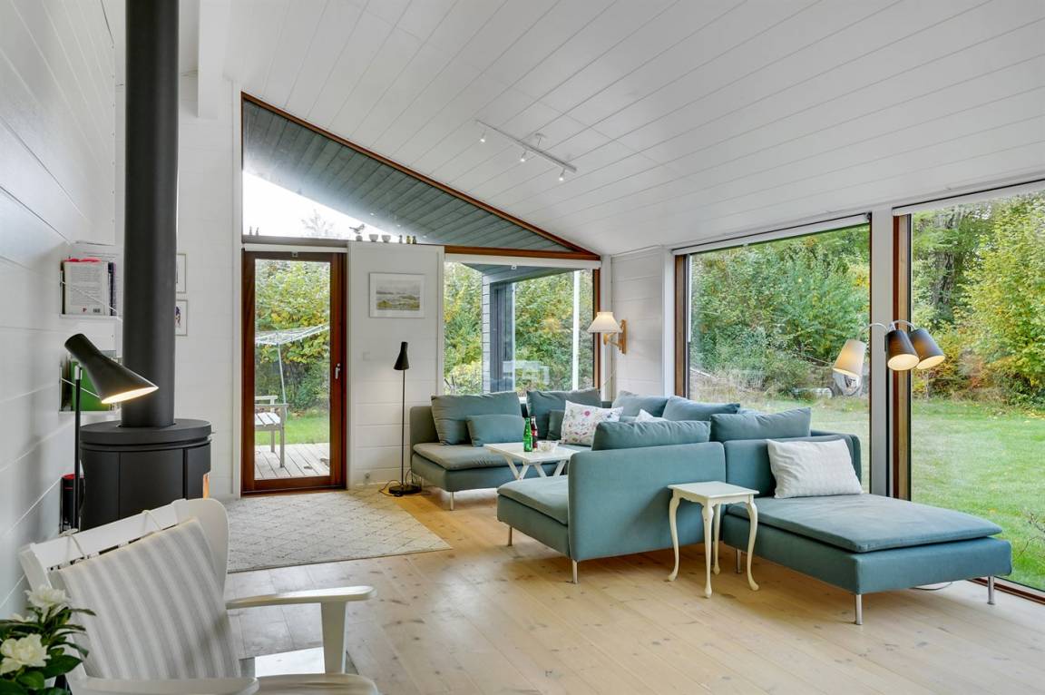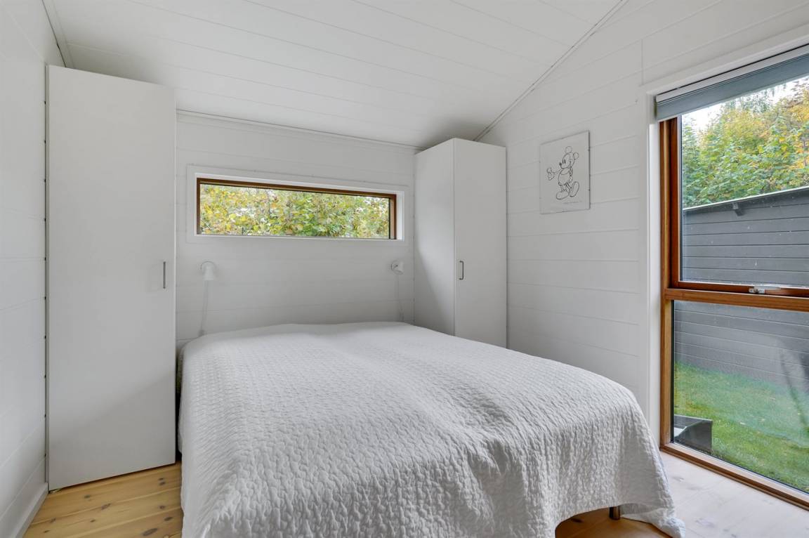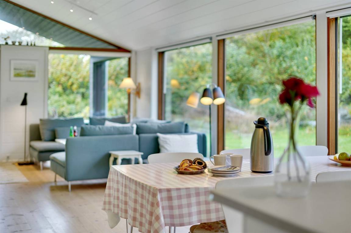 Dieses neue Ferienhaus von 2019 besticht dank großer Fensterfronten und hohen Decken in allen Räumen mit einem hellen und luftigen Raumgefühl. Das Haus wurde aus hochwertigen Materialien erbaut und im modernen Stil eingerichtet. Das Herzstück des Hauses ist der große offene Wohnbereich, der Küche, Essecke und Wohnzimmer umfasst. Es gibt 4 Schlafzimmer und 2 Badezimmer mit Fußbodenheizung und Duschnische. An eines der Badezimmer grenzt außerdem eine Sauna an. Auch Außenduschen sind vorhanden.