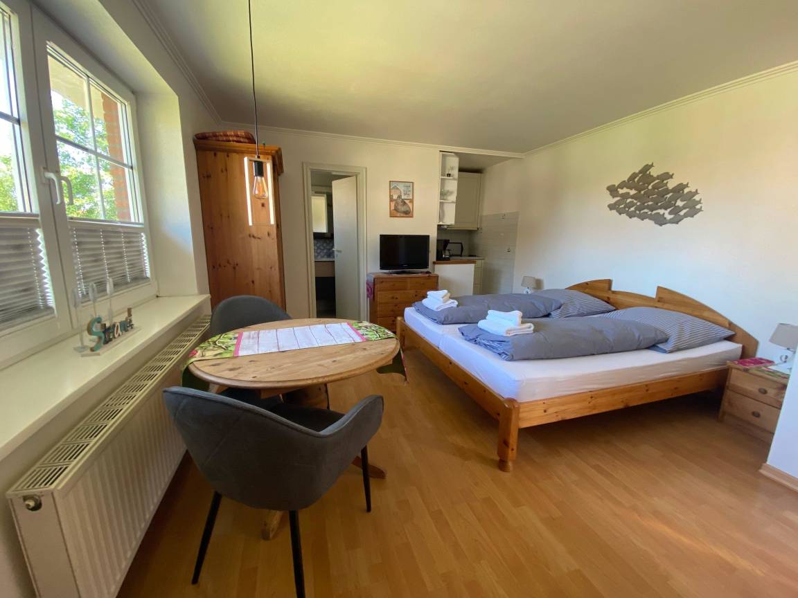 Ruhig, zentral, nur 4min vom Hafen / helle, gemütliche 1-Zimmer-Wohnung im Erdgeschoß / Doppelbett 1,80 x 2 m / Eßtisch und Sofa/ kleine Terrasse vor der Tür für W 3+4/ Parkplatz am Haus/ Schlüsselübergabe im Haus/ nur 1 Hund erlaubt/ Bad d2022 renoviert