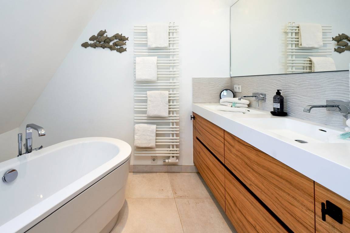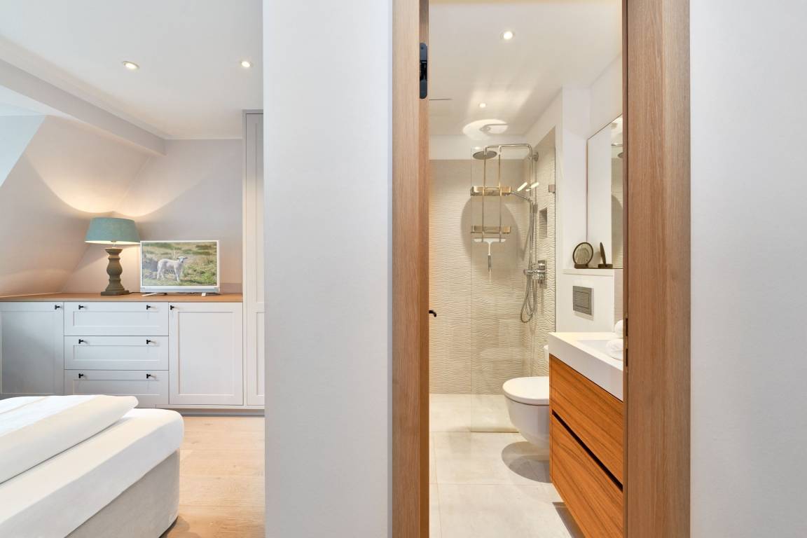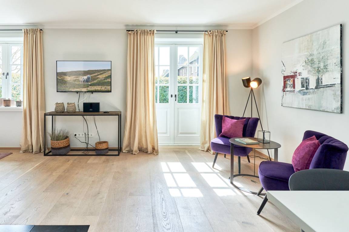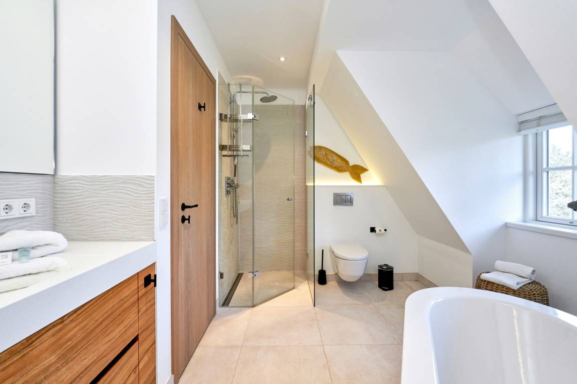 Es erwartet Sie ein außergewöhnlich großes und luxuriöses Ferienhaus unter Reet, alles kernsaniert, modern designt, individuell und ausgesprochen hochwertig ausgestattet mit jeweils 3 Doppelschlafzimmern und 3 Bädern, Der große Wohn-Essbereich mit Kamin und offener Küche lässt keinerlei Wünsche an Raumaufteilung und Ausstattung offen. Das Haus verfügt über einen Fitnessraum mit Crosstrainer, Fahrrad, Rudergerät und Yogamatte sowie einen separatem Duschbad mit WC. Der geschmackvolle Garten verfügt über zwei Terrassen eine mit Gartenmöbel und Tisch sowie die Süd - Terrasse mit Strandkorb. Stellplatz steht am Haus kostenlos zur Verfügung. Das Haus verfügt ab dem 01.01.2024 über eine E- Auto- Ladestation am dazugehörigen Parkplatz am Haus.