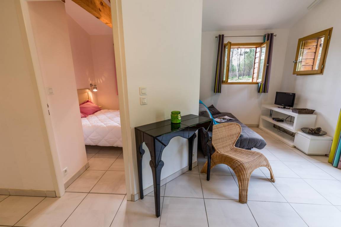 „Gîte au calme, en pleine nature, proche de la plage (10 min) et de du centre ville (3 min). Les gîtes sont suffisamment espacés les uns des autres, orientés de façon à ne pas avoir de vis à vis. Site ombragé.Le confort du gîte n’est pas top: Lit double inconfortable (le matelas fait des creux). Canapé clic/clac inconfortable. Quasiment pas de réseau. Cuisine minimaliste et petit four électrique. Manque de porte manteaux dans les chambres et salle de bain. Nul part où poser ses affaires.“