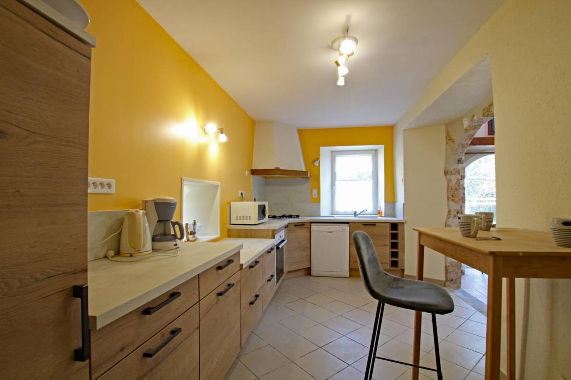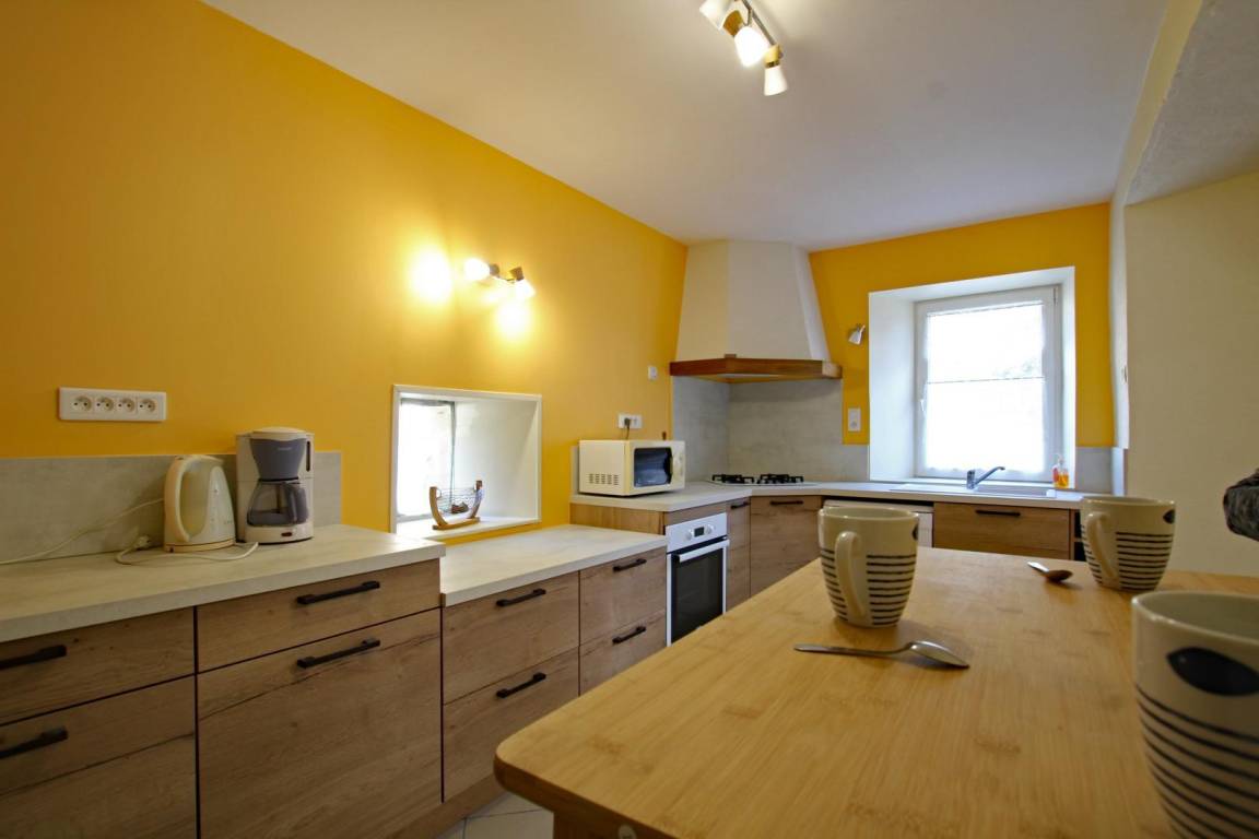 Ehemalige, freistehende Mühle. Großes Wohnzimmer mit Kamin (TV, DVD). Ausgestattete Küche (Gasherd, Backofen, Geschirrspüler, Mikrowelle). Obergeschoss: Schlafzimmer 1 (1 Doppelbett 160 x 190 cm), Schlafzimmer 2 (2 Einzelbetten 90 cm), kleines Duschbad mit ebenerdiger Dusche. Separates WC. Zwischengeschoss mit Waschküche. Betten sind bei Ankunft bezogen. Elektrische Heizung inklusive. Bettwäsche wird gestellt. Handtücher und Haushaltswäsche werden gestellt. Reinigungsservice gegen Aufpreis verfügbar. Brennholz vorhanden. Privater, nicht eingezäunter Garten. Terrasse. Gartenmöbel. Grill.