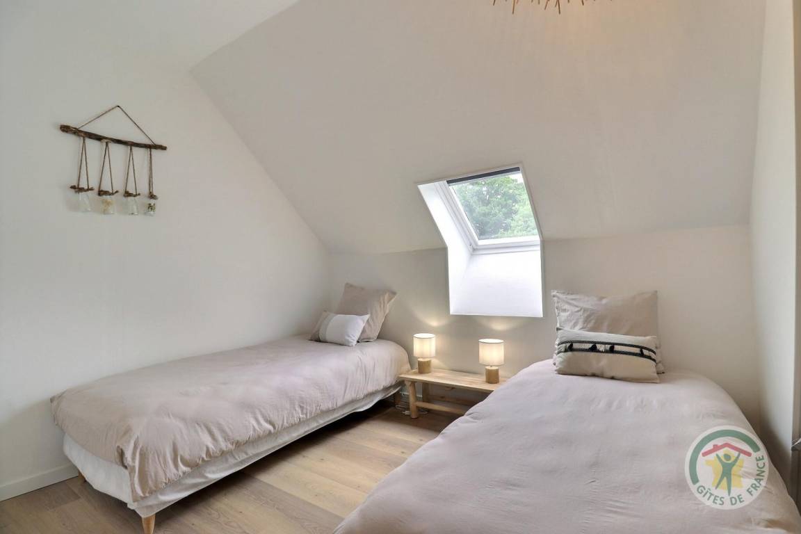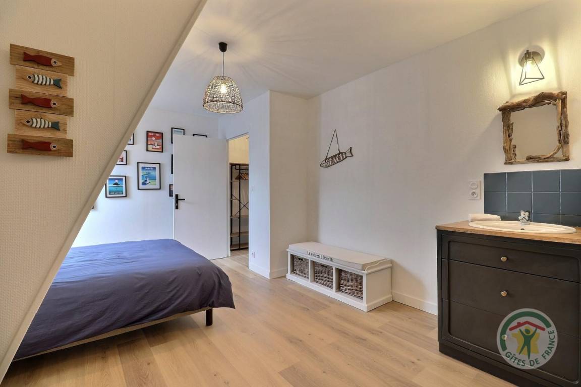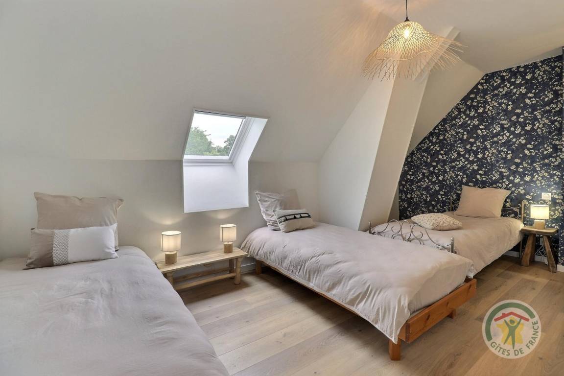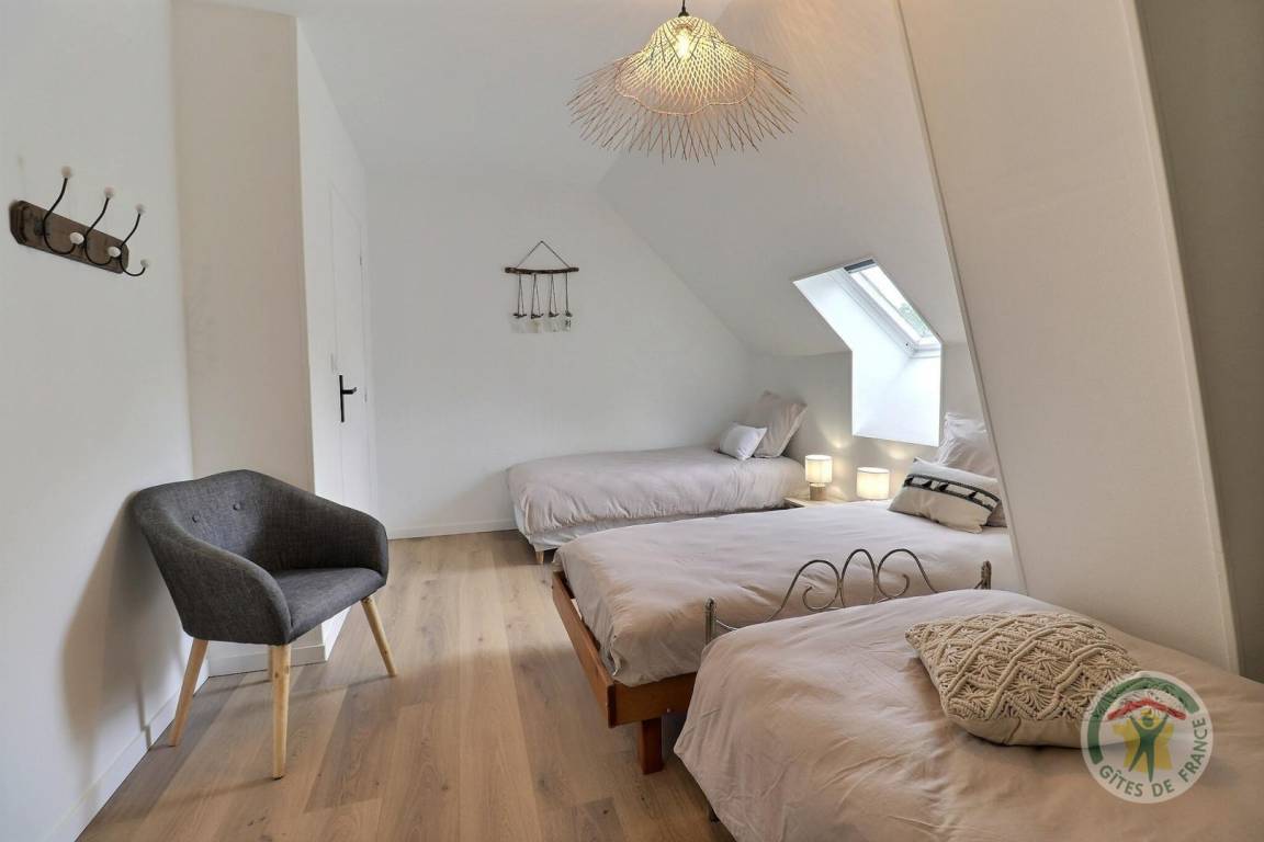 Im Erdgeschoss: ein Wohnzimmer mit Küche, Wohnzimmer und Aufenthaltsraum, ein Spielzimmer mit Fernseher, eine Waschküche mit Waschbecken, eine separate Toilette mit Waschbecken. Obergeschoss: eine Familieneinheit bestehend aus zwei angrenzenden Schlafzimmern mit Luftschleuse, die auf der einen Seite ein Bett 160 x 200 und auf der anderen Seite drei Betten 90 x 190 umfassen, jeweils mit Waschbecken, ein Schlafzimmer mit einem 160 x 200 und seinem Badezimmerbereich, ein Schlafzimmer mit ein 180x200-Bett, das in zwei Einzelbetten umgewandelt werden kann, ein Schlafzimmer mit einem 160x200-Bett und einem 90x190-Bett und einem Waschbecken, zwei Duschbäder und ein separates WC mit Waschbecken. Beheizung durch Fußbodenheizung im Erdgeschoss und Warmwasserradiatoren im Obergeschoss. in unmittelbarer Nähe auf einem privaten Grundstück.