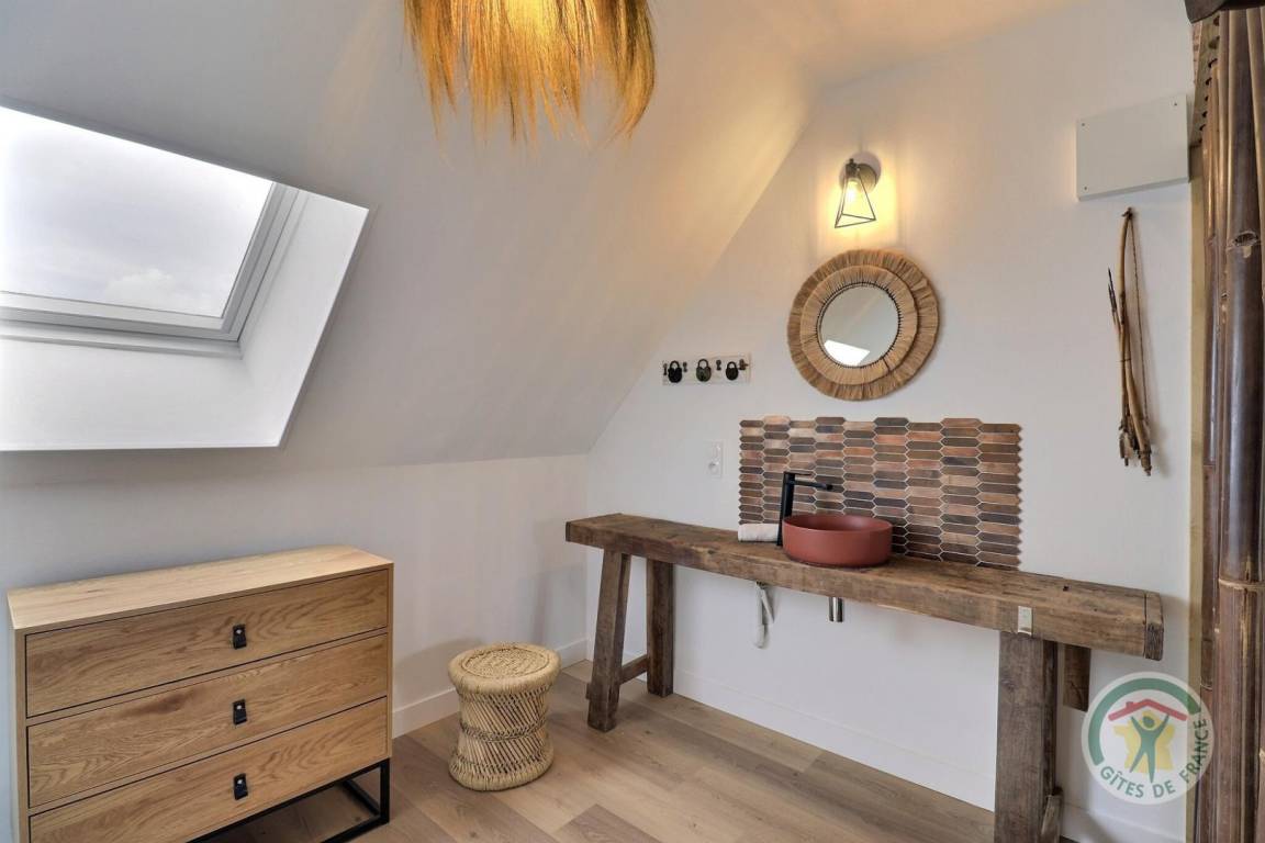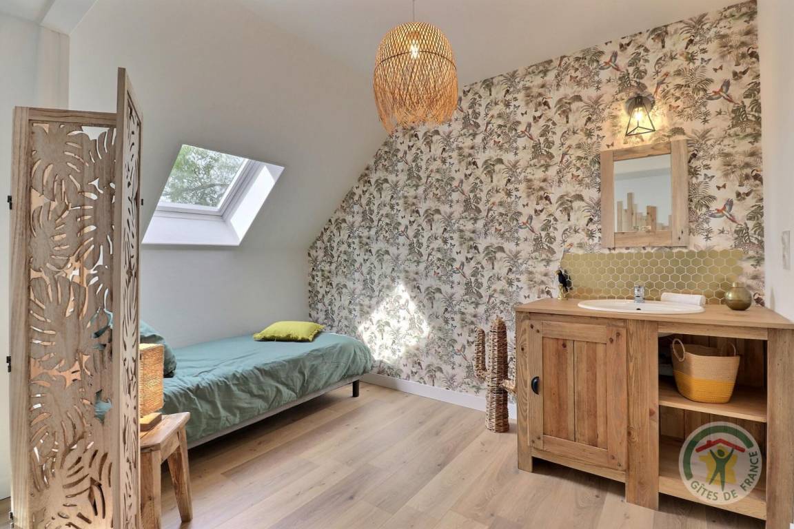 „Week-end en famille réussi dans ce superbe gîte magnifiquement décoré où il ne manque rien..nous avions tous les âges de 20 mois à 96 ans entre les jeux de boule, la balançoire, la table de ping pong il y avait de quoi s 'occuper...la literie est d'excellente qualité, le jardin est très joliment arboré je pense que nous reviendrons...Merci à M. POTREL pour ses délicates intentions et sa gentillesse“