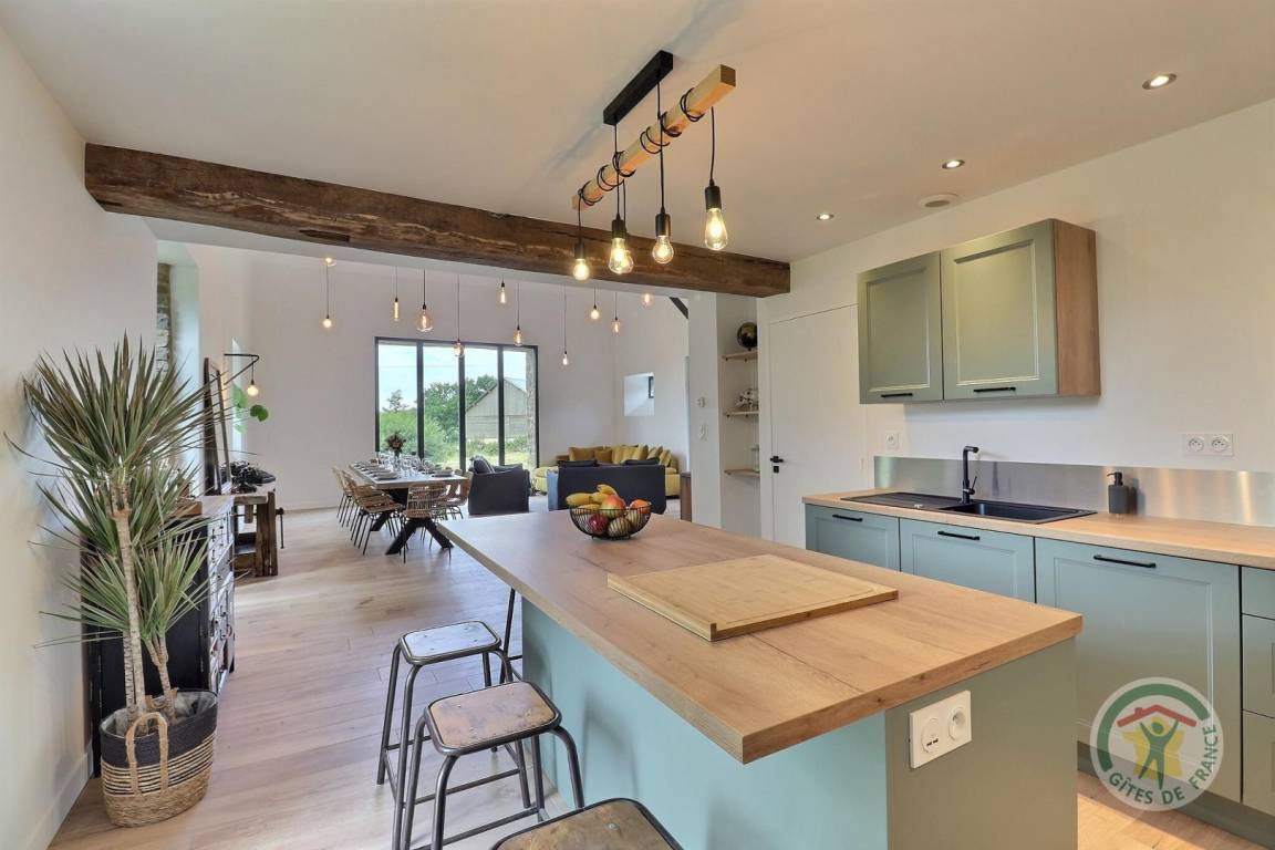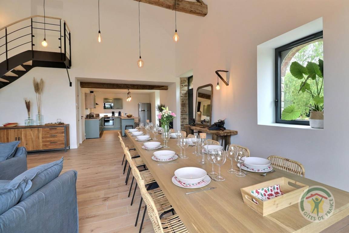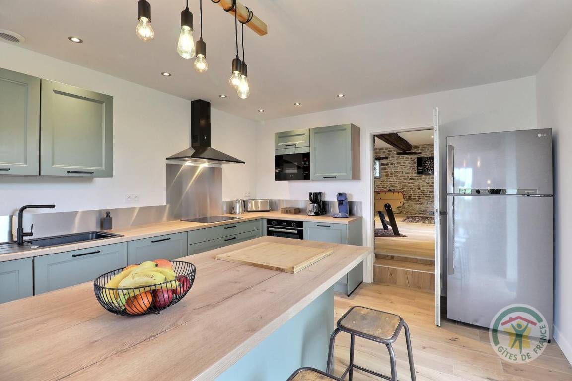 „Superbe grand gîte dans la campagne, mais proche de Saint-Aubin-du-Cormier, Vitré et Fougères. Idéal pour 4 couples de randonneurs ou une réunion familiale. Gîte très bien équipé, propriétaire sympathique et agréable. Salle de jeux, séjour, cuisine et jardin en rez-de-chaussée, chambres à l'étage. Un gîte que l'on recommande après y avoir séjourné.“