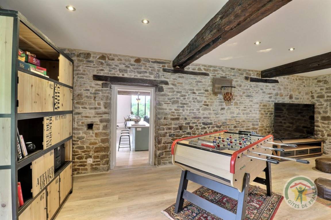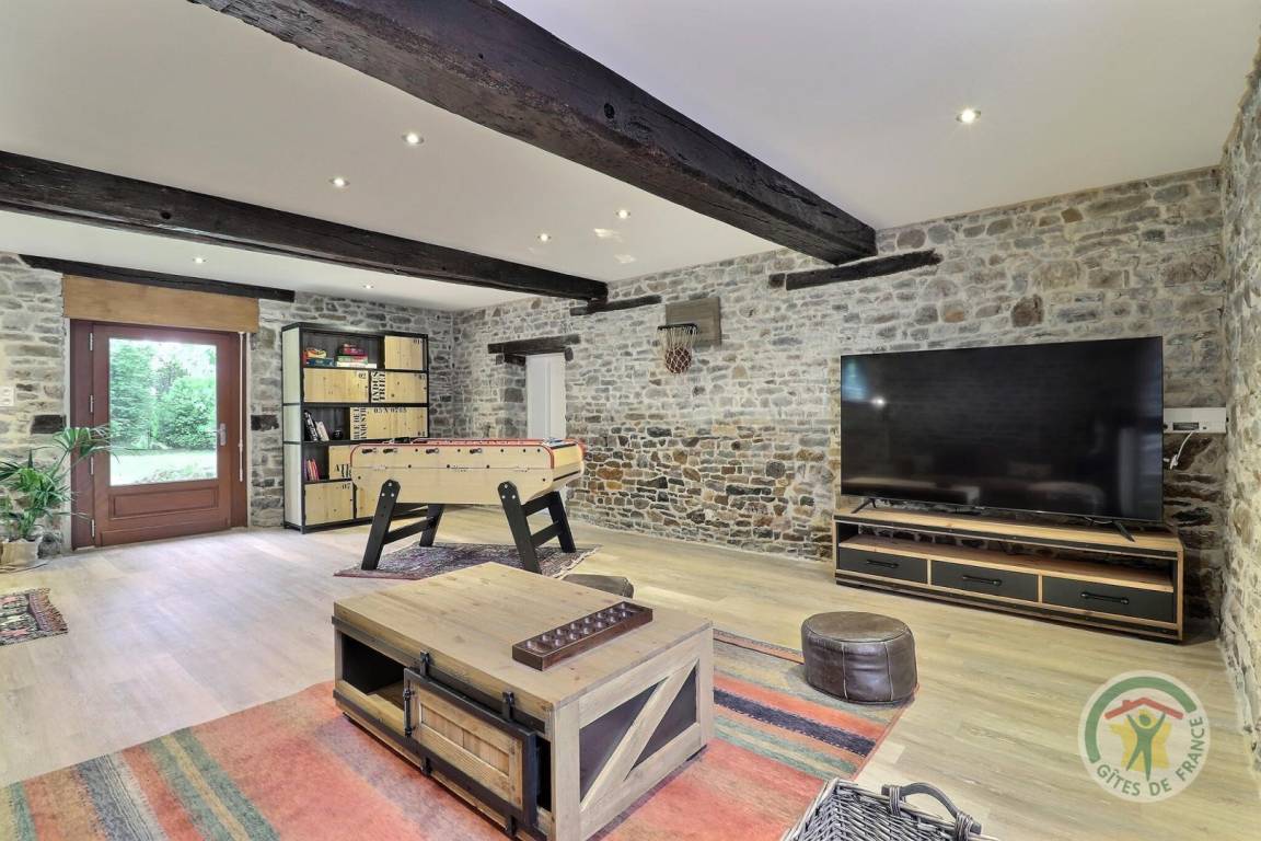 „Gite spacieux pour 12 personnes; Nous apprécions la salle de jeux pour les enfants et les adultes avec le baby-foot. Cuisine fonctionnelle, bien équipée. Grande tablée familiale dans la salle à manger. Très beau sapin installé pour notre Noël.“