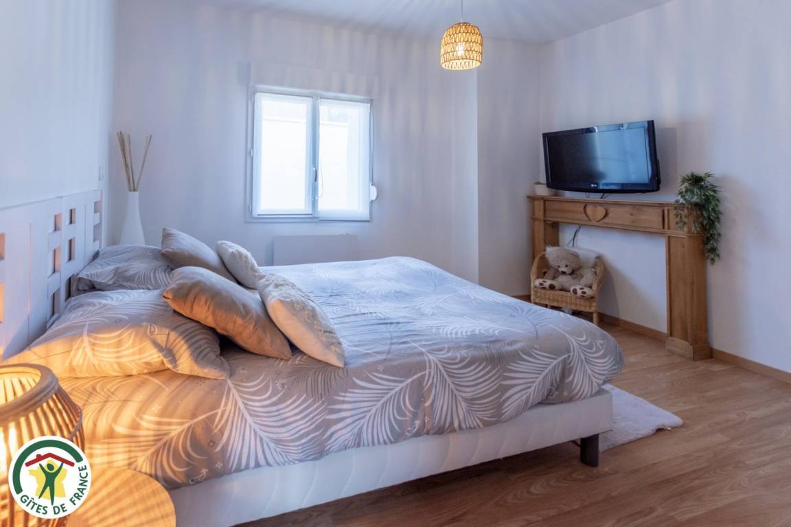 „Gîte très agréable, accueil chaleureux, la seule chose la taille des lits 140 les trois, avec nos petits enfants il aurait étais super d’avoir deux lit de 90. Je recommande fortement se Gîte. Merci à Aurélie et sa sœur pour leur gentillesse.“