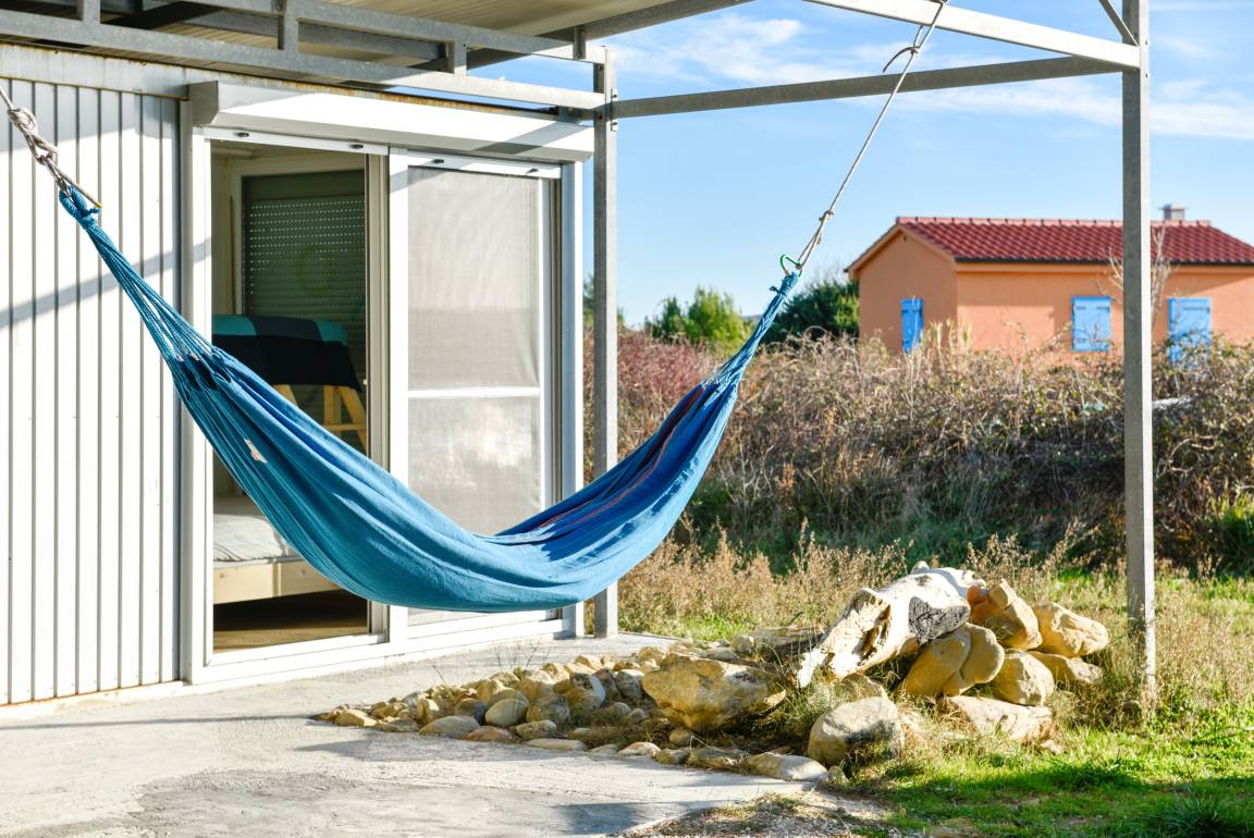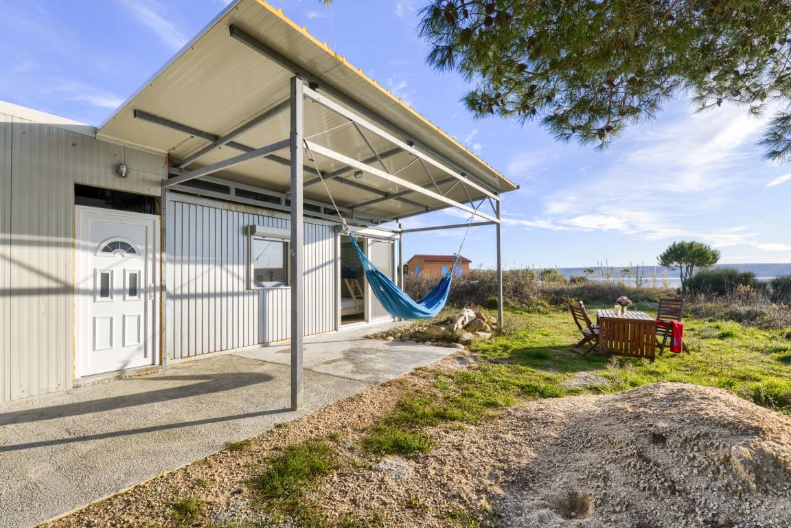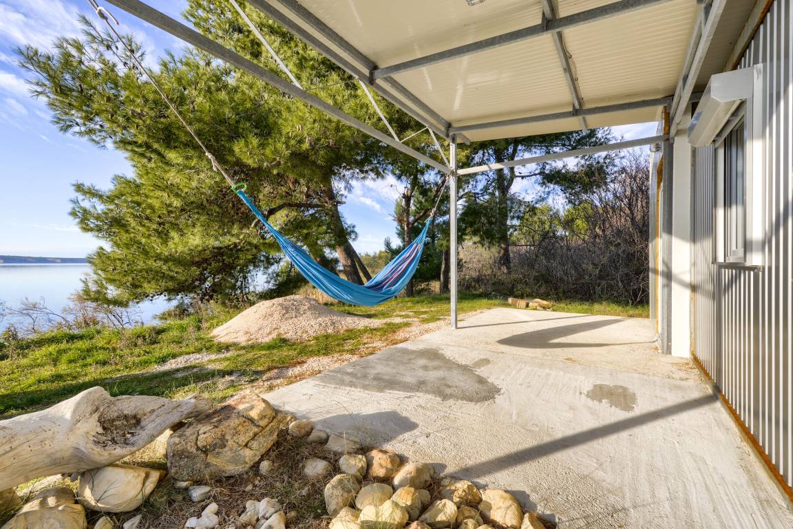 Ein Stockbett bietet Platz für bis zu drei Personen, Ihnen steht eine Küche sowie ein Bad mit WC und Dusche zur Verfügung. Von der großen Terrasse sind es nur wenige Schritt bis ins Meer.