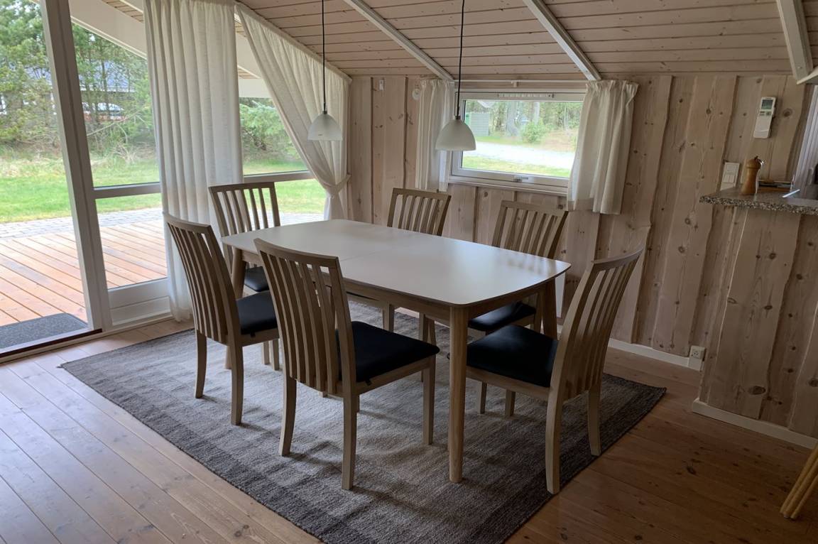 EinrichtungDas Ferienhaus eignet sich für 6 Personen sowie 1 Kleinkind bis zu 3 Jahren. Die Ferienunterkunft hat eine Wohnfläche von 88 m² und wurde 2001 gebaut. Haustiere dürfen nicht mitgebracht werden. Die Ferienunterkunft ist mit energiesparender Wärmepumpe ausgestattet. Die Ferienunterkunft ist mit Waschmaschine ausgestattet. Wäschetrockner. Tiefkühlmöglichkeit mit 60 Liter Nutzinhalt. Es gibt außerdem einen Kaminofen. Für die jüngsten Feriengäste ist 1 Kinderhochstuhl vorhanden.