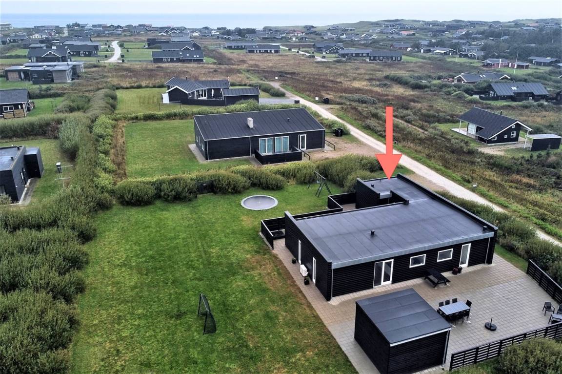 DraußenDie Ferienunterkunft liegt auf einem 1800 m² großen Naturgrundstück. Die Entfernung zum Meer beträgt 700 m. Die nächste Einkaufsmöglichkeit liegt 7300 m entfernt. In einem Abstand von 7300 m gibt es einen Golfplatz. Es steht ein 200 m² Terrassenareal zur Verfügung. Schaukel. Sandkasten. Trampolin. Fußballtor. Es ist ein Ladestecker für Elektroautos installiert. Parkplatz auf dem Grundstück.