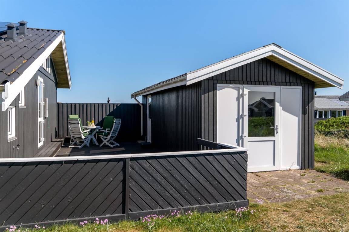 DraußenDie Ferienunterkunft liegt auf einem 880 m² großen Naturgrundstück. Die Entfernung zum Meer beträgt 300 m. Die nächste Einkaufsmöglichkeit liegt 1000 m entfernt. Es steht ein 60 m² geschlossenes Terrassenareal zur Verfügung. Davon sind 18 m² überdacht. Zutritt zu einem Atriumgarten. Geräteraum. Es ist ein Ladestecker für Elektroautos installiert. Parkplatz auf dem Grundstück.