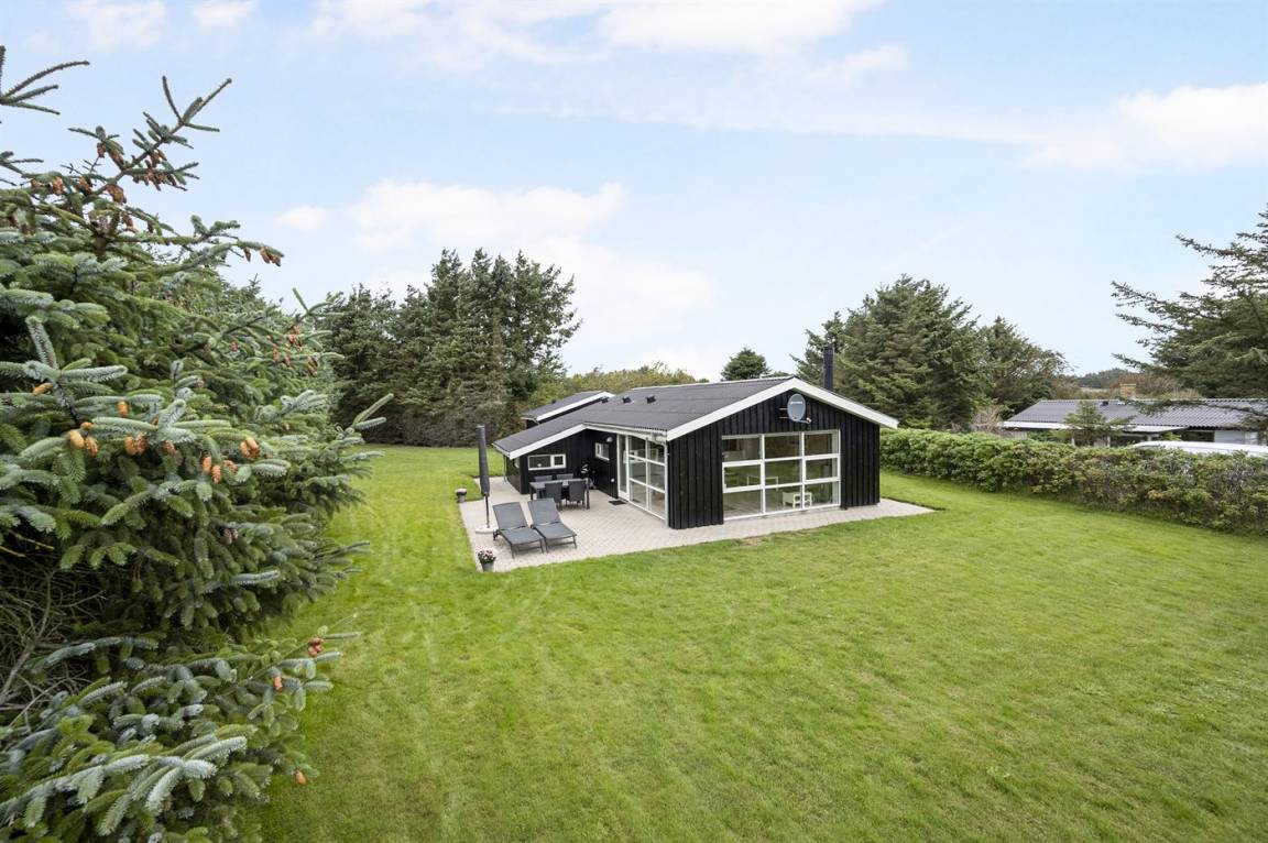 DraußenDie Ferienunterkunft liegt auf einem 1275 m² großen Naturgrundstück. Die Entfernung zum Meer beträgt 400 m. Die nächste Einkaufsmöglichkeit liegt 4000 m entfernt. Es steht ein 40 m² Terrassenareal zur Verfügung. Schaukel. Es ist ein Ladestecker für Elektroautos installiert. Parkplatz auf dem Grundstück.