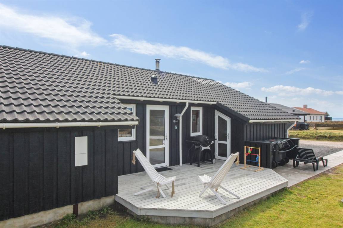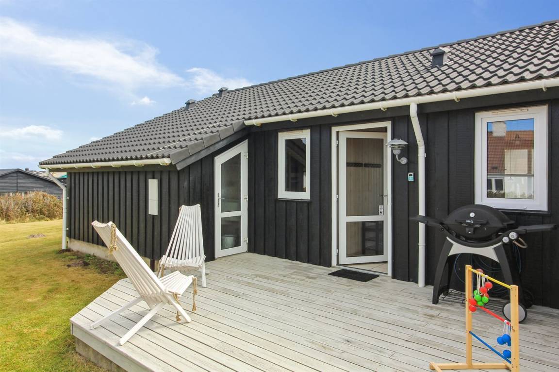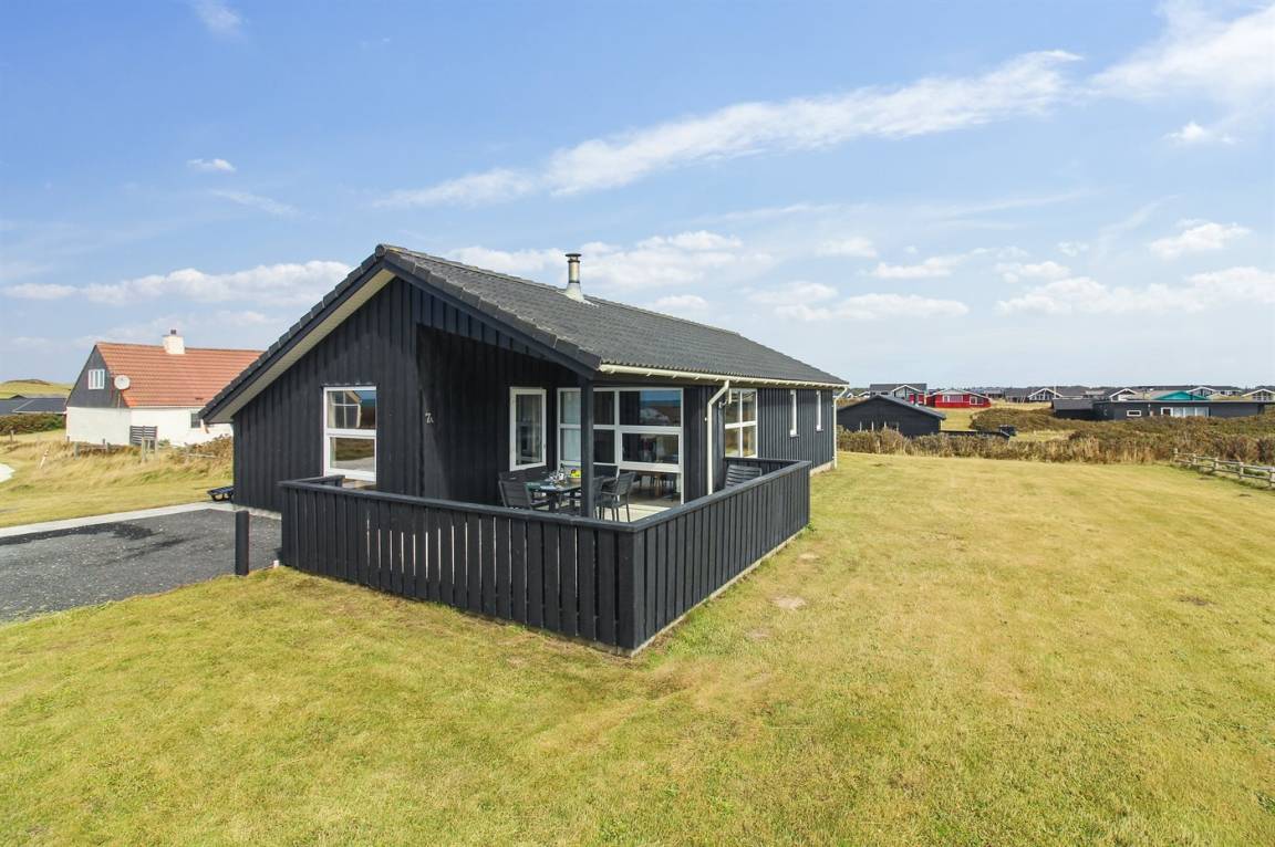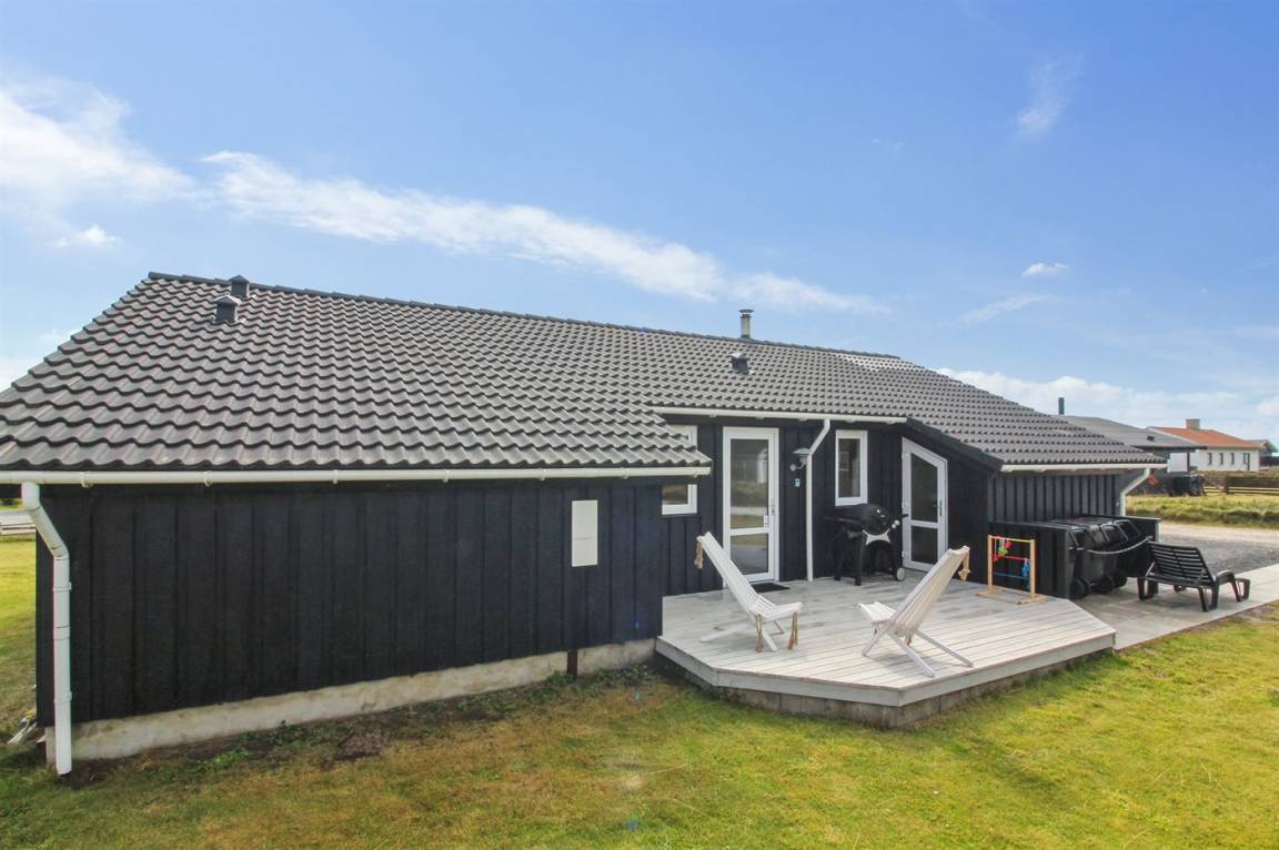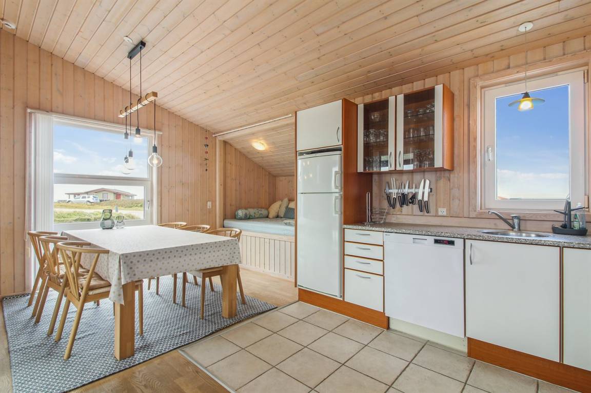 Auf einem offenen Grundstück, nur ca. 1 Minute Fußweg zu Nr. Lyngbys charakteristisch steilen Küste, liegt dieses schöne Sommerhaus. Vom Esswinkel in der Küche und der Stube gibt es Meerblick, so dass man die großartige Natur der Westküste genießen kann. Aus der Küche gibt es Zugang zur herrlichen und teilweise überdachten Holzterrasse, die niedrig eingefasst ist.
