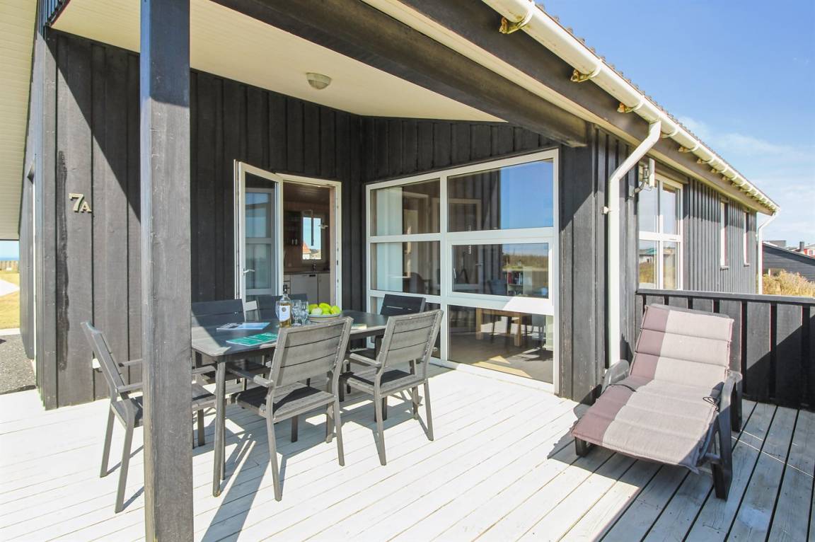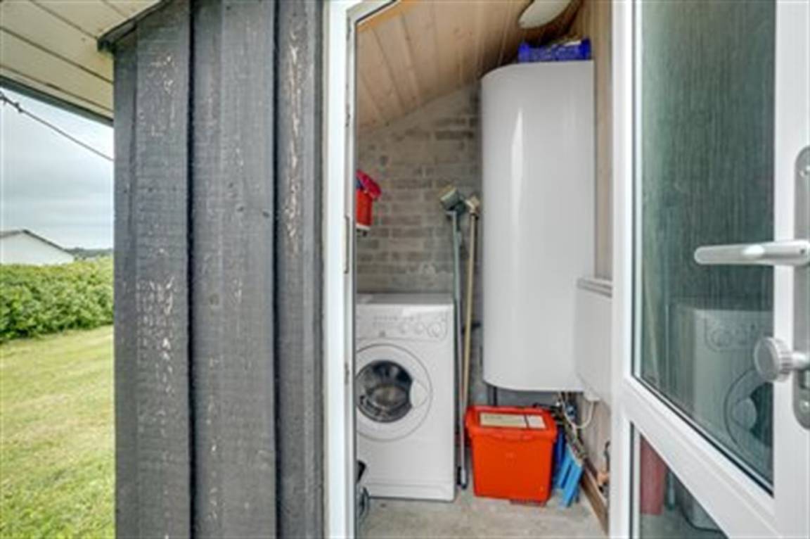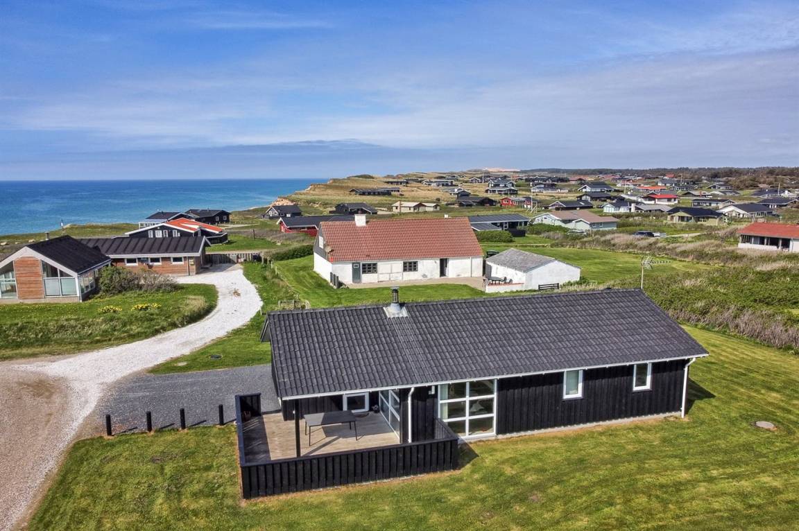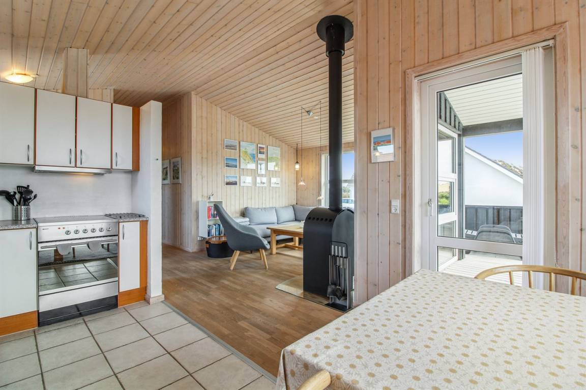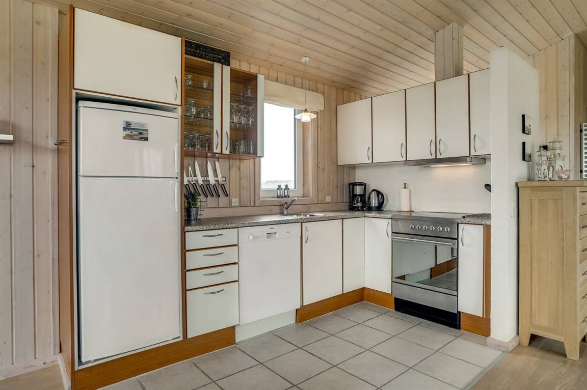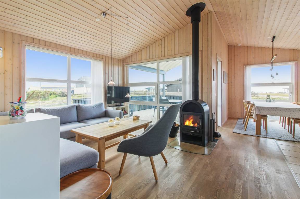 Auf einem offenen Grundstück, nur ca. 1 Minute Fußweg zu Nr. Lyngbys charakteristisch steilen Küste, liegt dieses schöne Sommerhaus. Vom Esswinkel in der Küche und der Stube gibt es Meerblick, so dass man die großartige Natur der Westküste genießen kann. Aus der Küche gibt es Zugang zur herrlichen und teilweise überdachten Holzterrasse, die niedrig eingefasst ist.