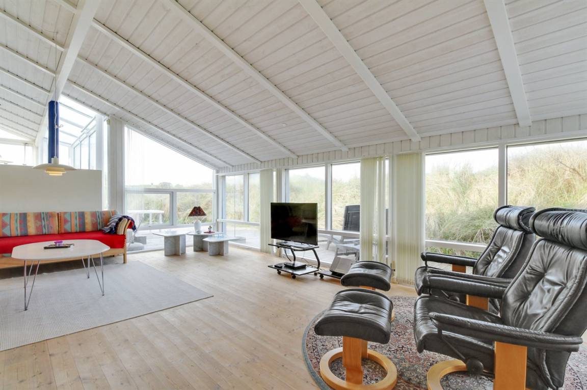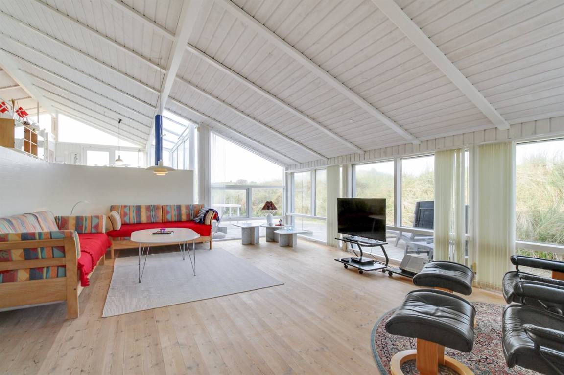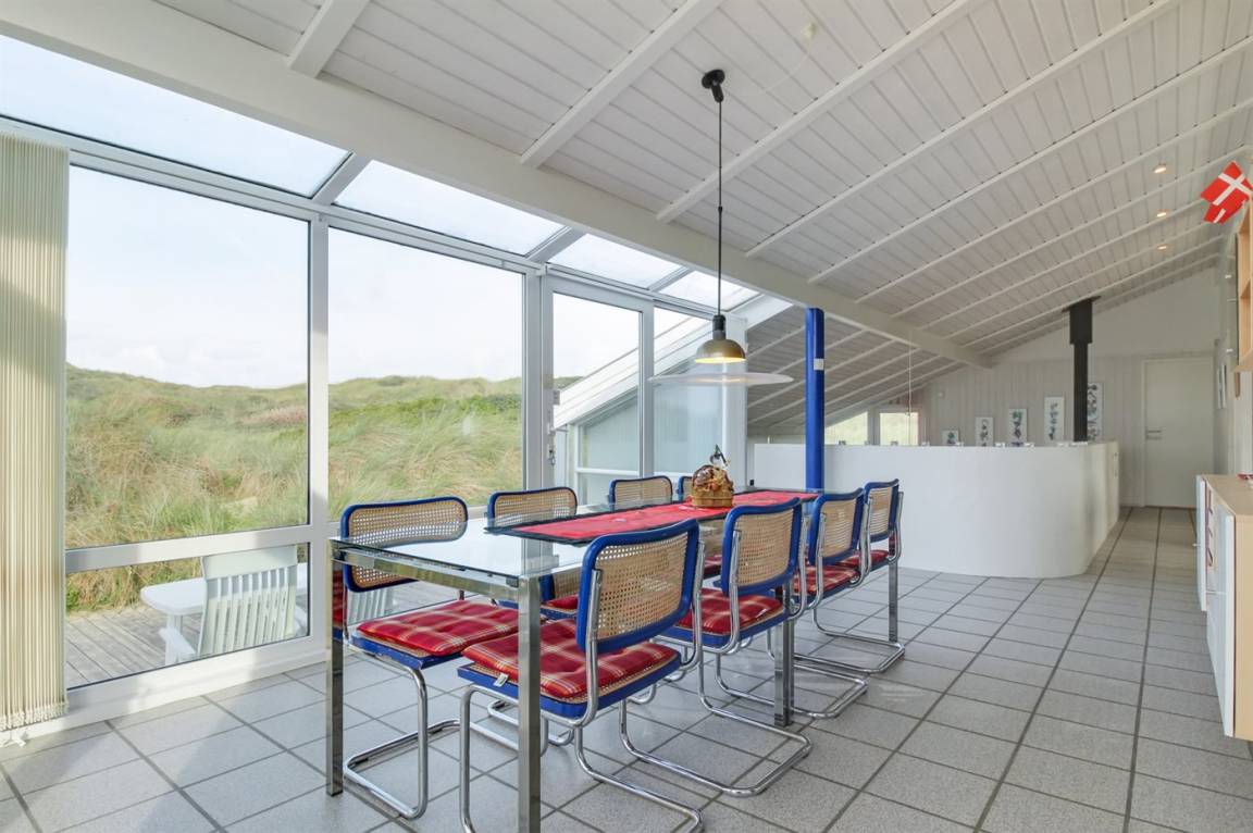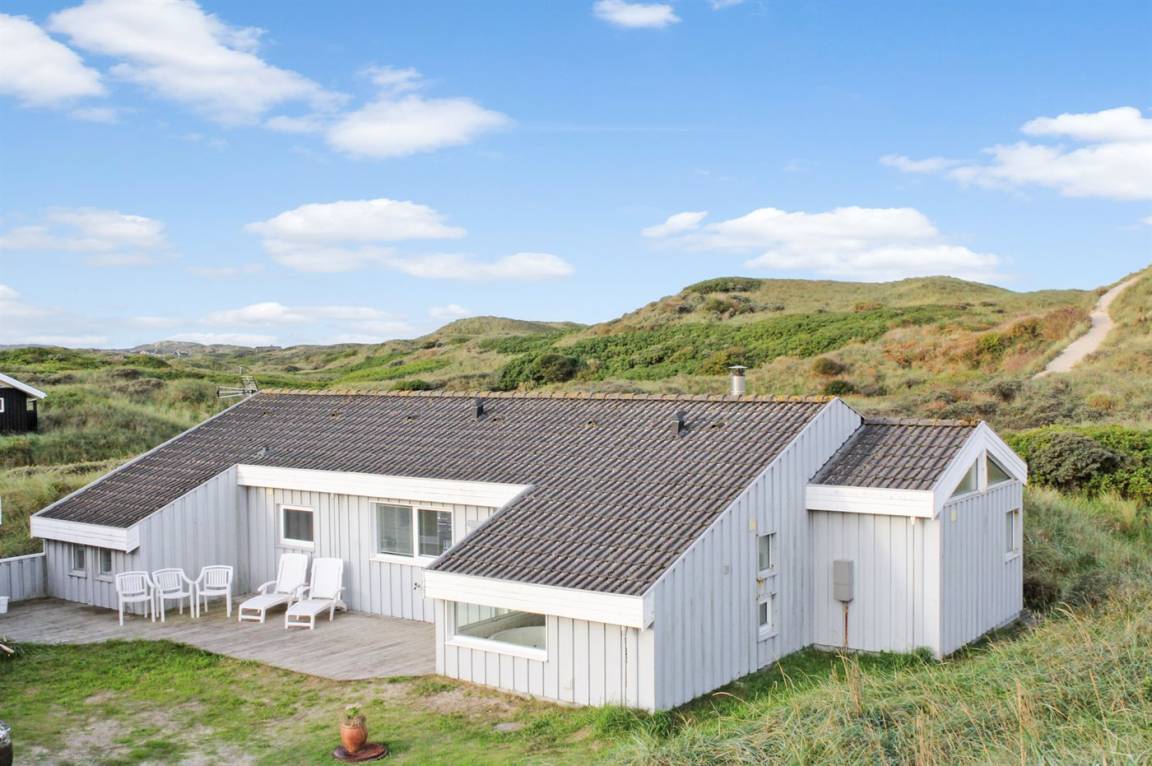 Ein großes und gut ausgestattetes Ferienhaus in der ersten Reihe, auf einem sehr großen und leicht hügeligen Grundstück mit direktem Zugang zum Strand. Vom Grundstück aus hat man Meerblick, und vom Haus aus hat man einen herrlichen Blick auf die Dünen. Das Haus ist hell eingerichtet mit einem in versetzter Ebene liegende Wohnbereich und richtet sich ins besondere an das erwachsene Publikum.