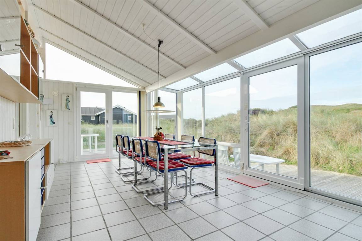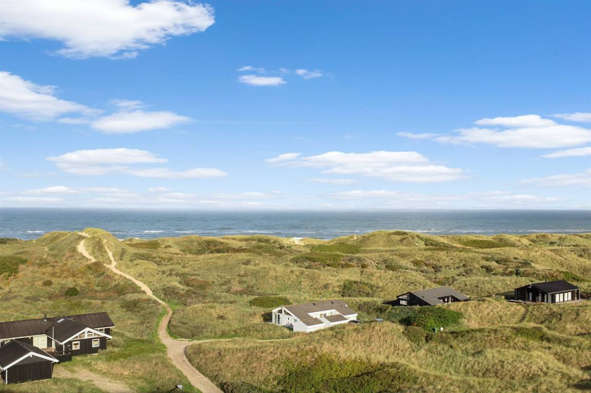 DraußenDie Ferienunterkunft liegt auf einem 12500 m² großen Dünengrundstück. Die Entfernung zum Meer beträgt 200 m. Die nächste Einkaufsmöglichkeit liegt 3000 m entfernt. Es steht ein 70 m² Terrassenareal zur Verfügung. Geräteraum. Parkplatz auf dem Grundstück.
