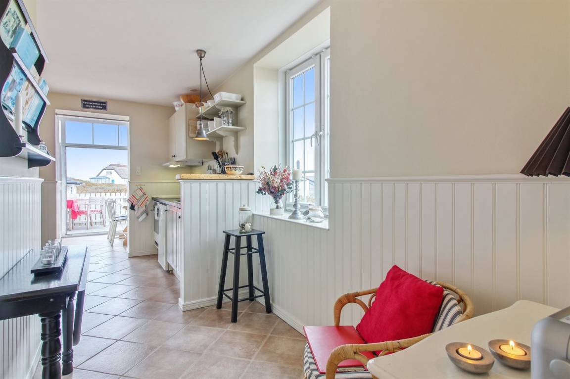 Schön und gut eingerichtete Wohnung zentral in Løkken gelegen. Ausgang vom Haus aus zu der großen neuen Terrasse, die in den Dünen liegt.