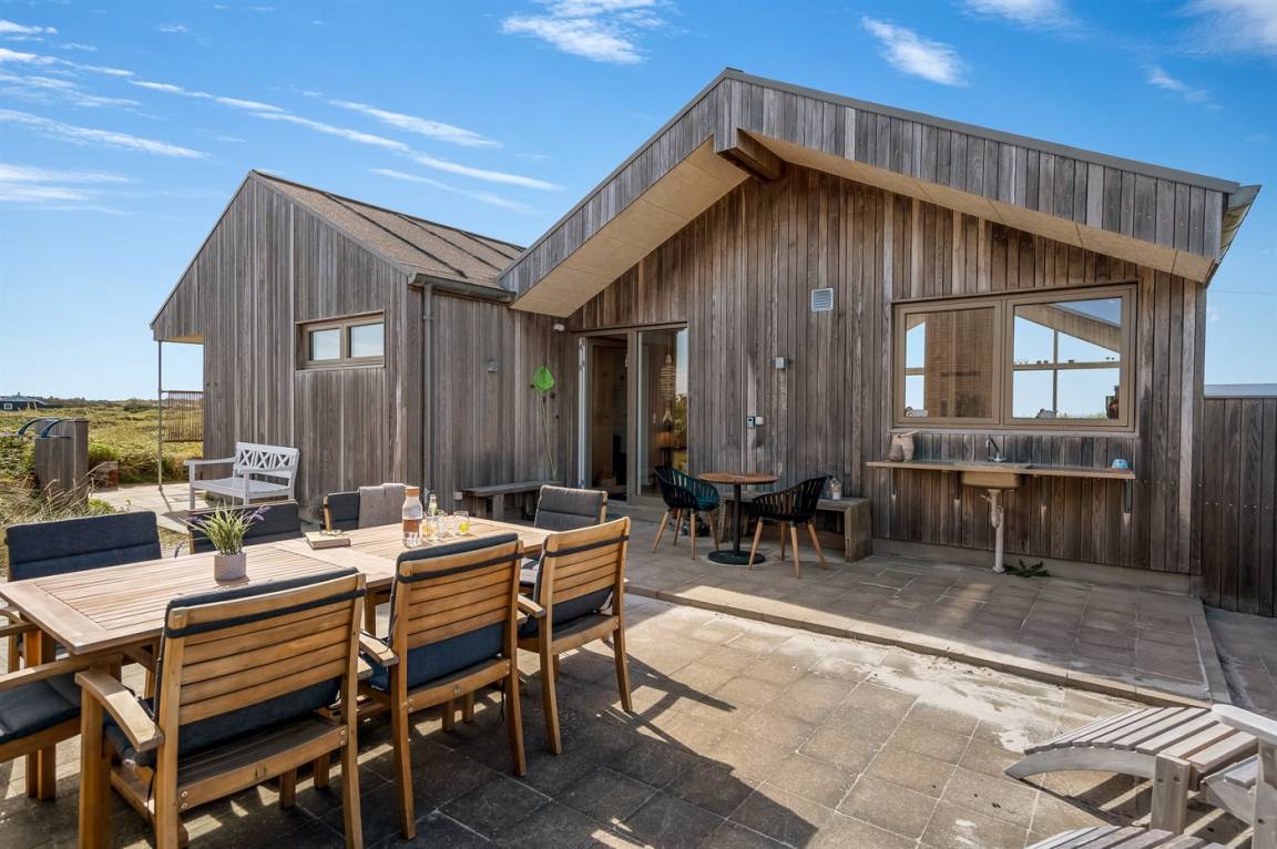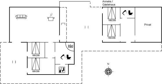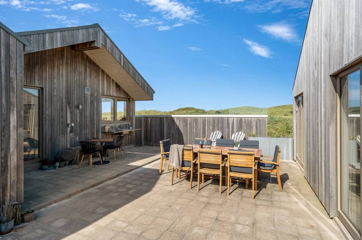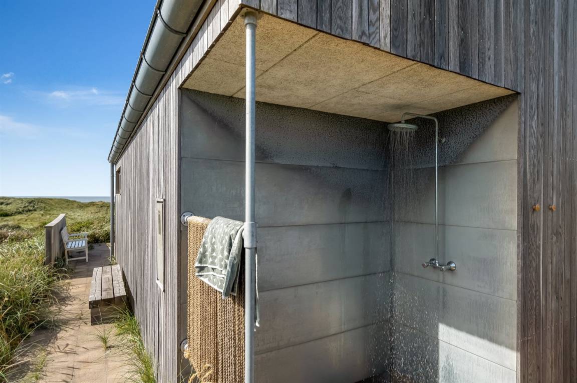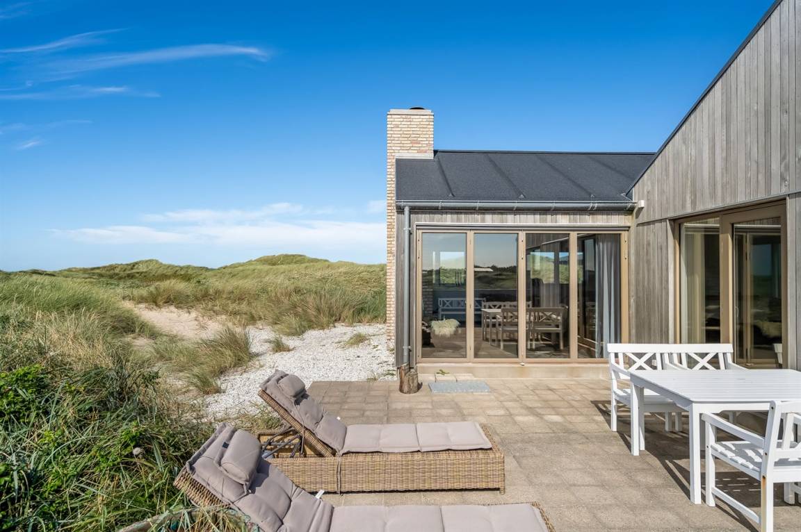 DraußenDie Ferienunterkunft liegt auf einem 2500 m² großen Dünengrundstück. Die Entfernung zum Meer beträgt 100 m. Die nächste Einkaufsmöglichkeit liegt 500 m entfernt. Es steht ein 85 m² Terrassenareal zur Verfügung. Außerdem gibt es 5 m² überdachte Terrasse. Außendusche. Parkplatz auf dem Grundstück.