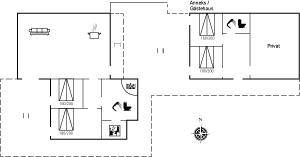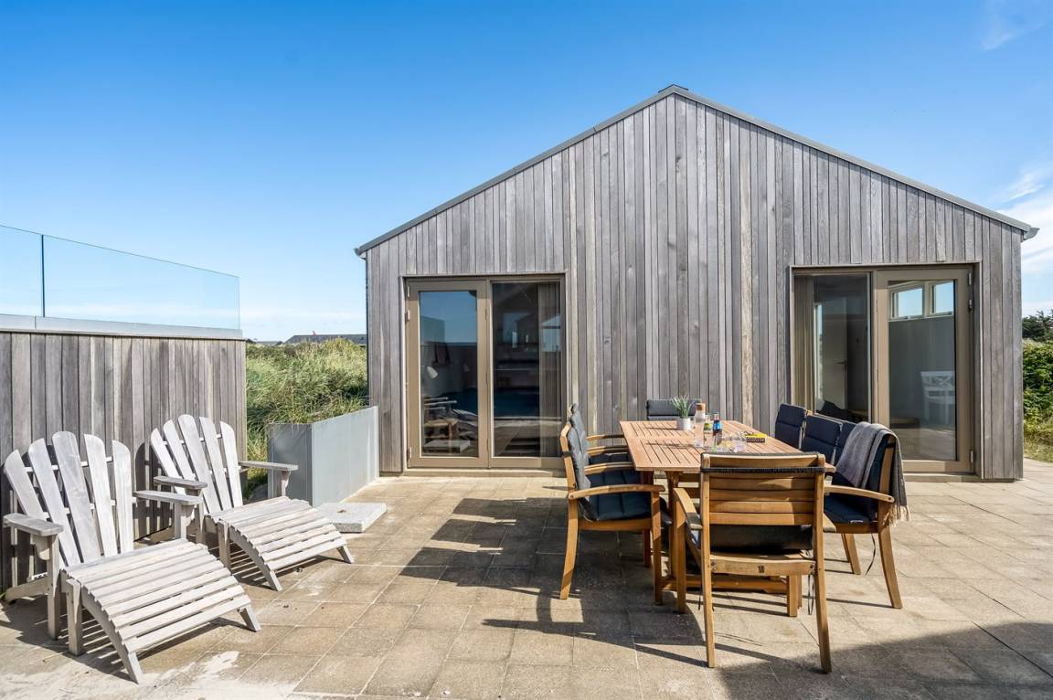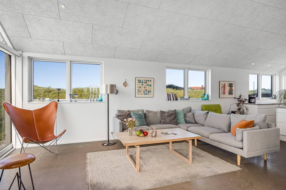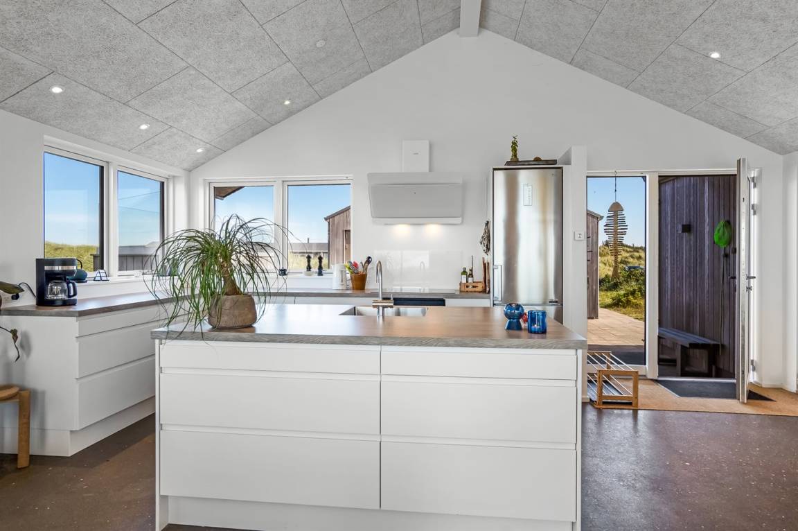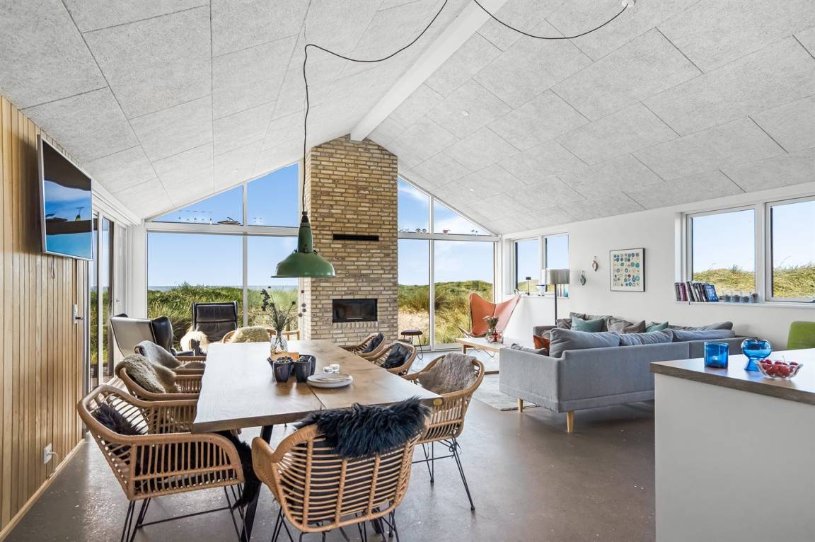 DraußenDie Ferienunterkunft liegt auf einem 2500 m² großen Dünengrundstück. Die Entfernung zum Meer beträgt 100 m. Die nächste Einkaufsmöglichkeit liegt 500 m entfernt. Es steht ein 85 m² Terrassenareal zur Verfügung. Außerdem gibt es 5 m² überdachte Terrasse. Außendusche. Parkplatz auf dem Grundstück.