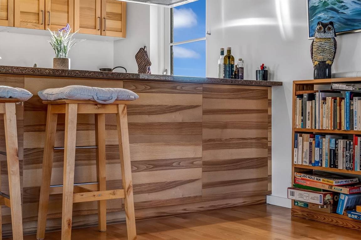KücheDie Küche ist mit Kühlschrank ausgestattet. Außerdem gibt es 4 Induktions-Kochzonen, Umluftofen, Mikrowelle sowie Geschirrspüler.