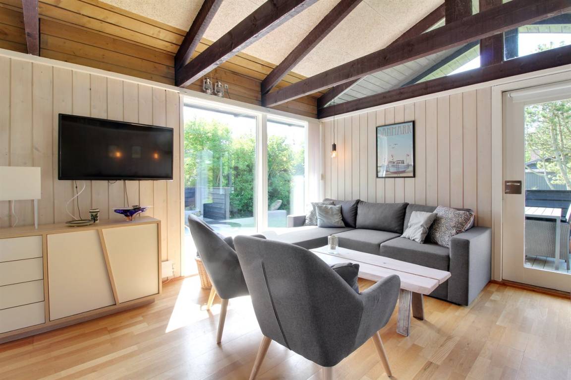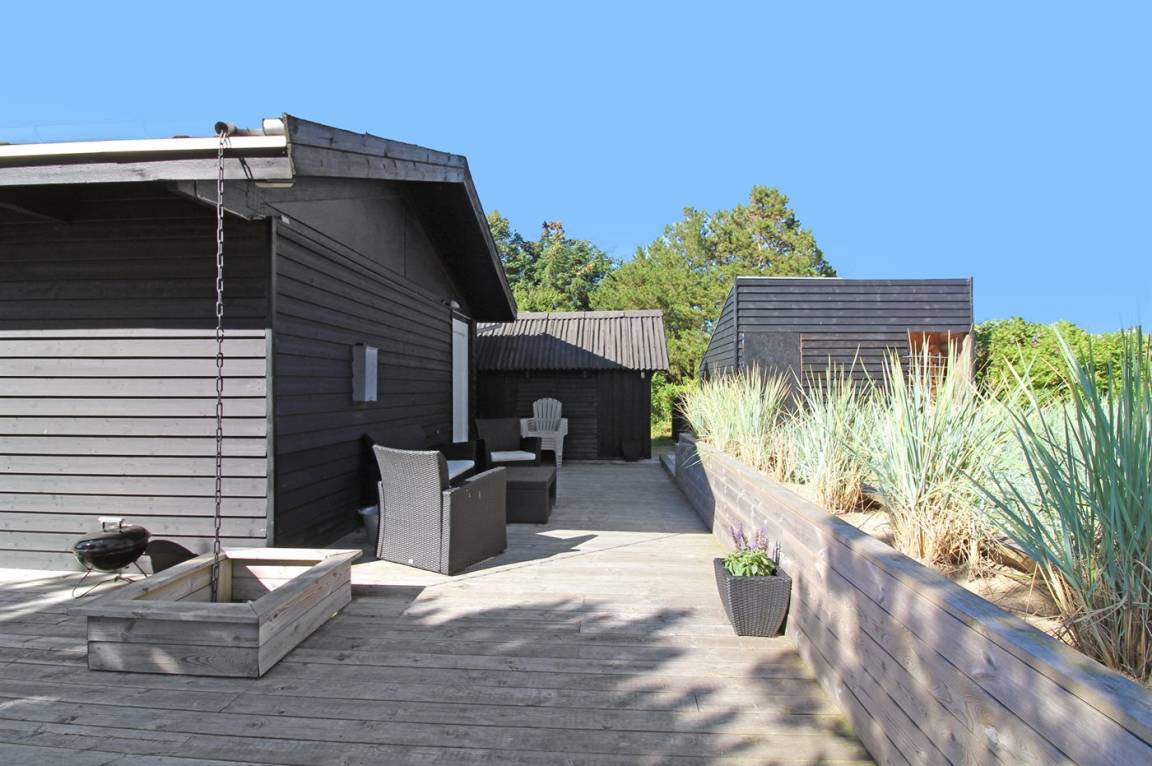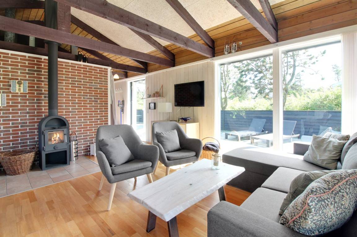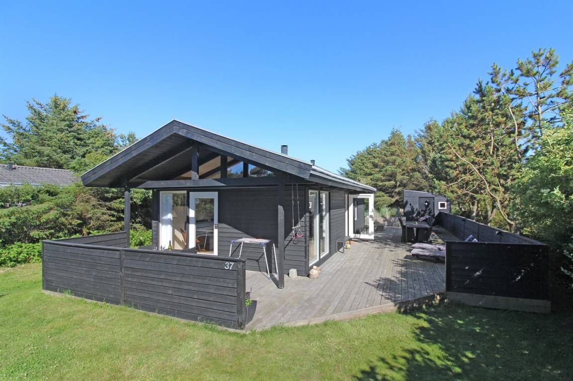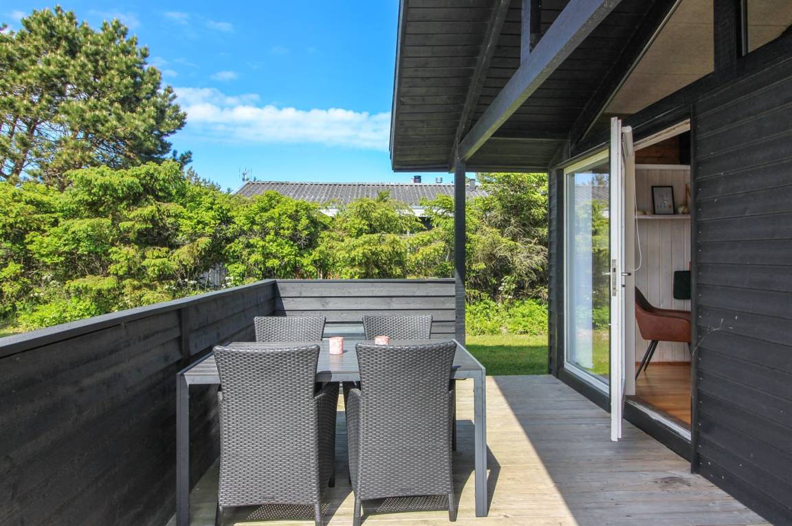 Das Ferienhaus ist von einer großen Holzterrasse umgeben, und du musst nicht an den Strand gehen, um das Strandsgefühl zu erleben, da am Rand der Terrasse eine gemütliche kleine Strand-Oase angelegt ist. Das Hängemattengestell und die Spielgeräte im Außenbereich bieten ausreichend Platz für Kinder und Kindgebliebene.