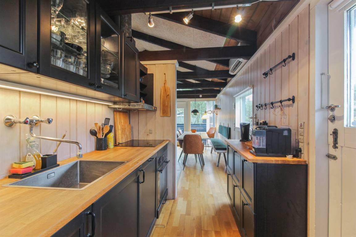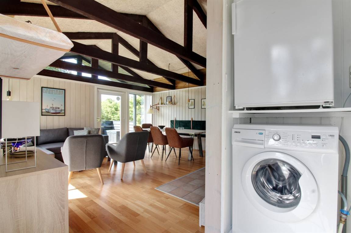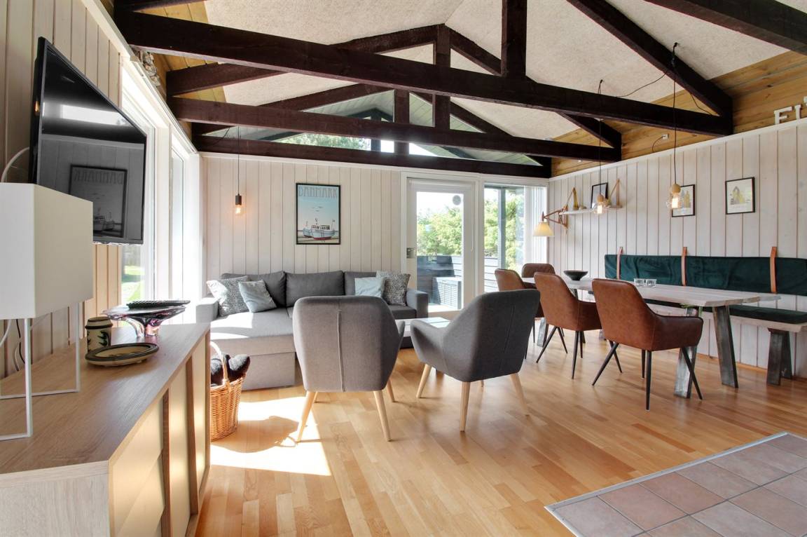 Ein unglaublich gemütliches Ferienhaus mit genauso viel Platz, den du brauchst um das ganz richtige und authentische Ferienhausgefühl zu erleben. Das Haus ist modernisiert und verfügt über neu renovierte Schlafzimmer. Du betrittst einen Flur mit einem geräumigen Schlafzimmer auf der einen Seite und einem Wohnzimmer auf der anderen. In der Küche kannst du ein echtes Urlaubsfestmahl voller schöner Erinnerungen zubereiten, und neben der Küche befindet sich ein weiteres geräumiges Schlafzimmer, in dem sich auch ein offenes Obergeschoss unter dem Sternenhimmel befindet. Schau nach oben und sieh die freigelegten Deckenbalken, die sich durch das ganze Haus ziehen.