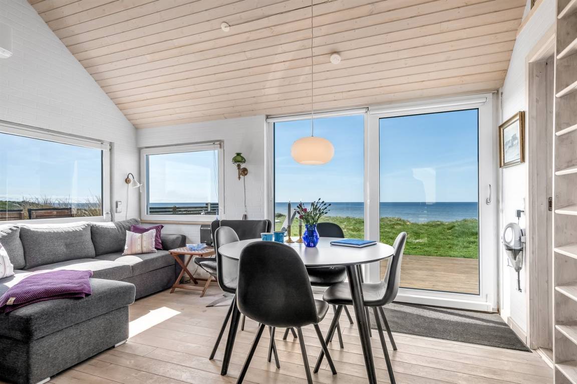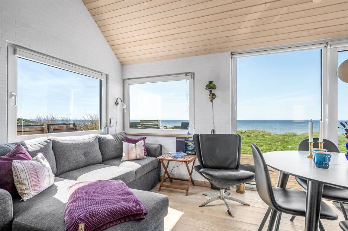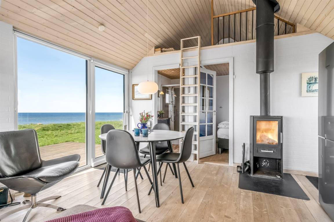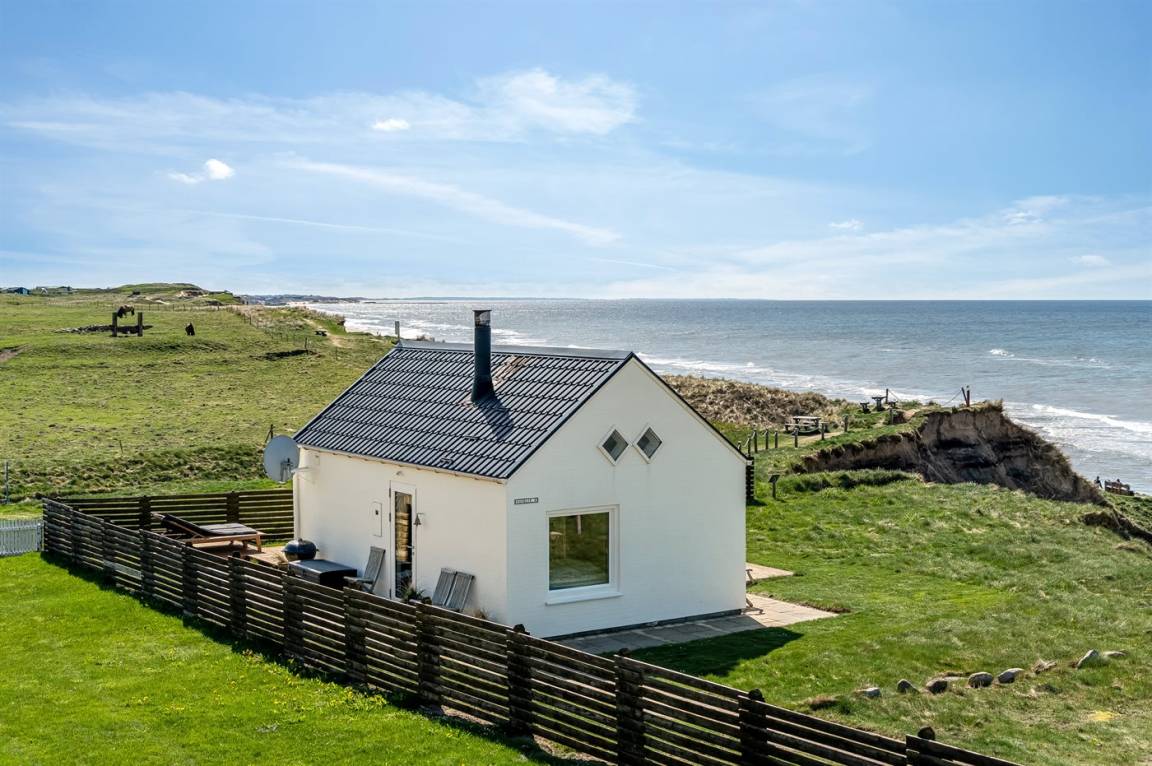 Ein einzigartig gelegenes, kleines Ferienhaus mit einem herrlichen Ausblick auf das Meer. Das Haus liegt in Nr. Lyngby – in der äußersten Reihe zum Steilhang hinaus. Zum Haus gehören 3 Terrassen und eine gemütliche Lagerfeuerstelle. Übrigens: 2 der insgesamt 4 Schlafplätze befinden sich auf einer Doppelschlafcouch im Wohnzimmer.