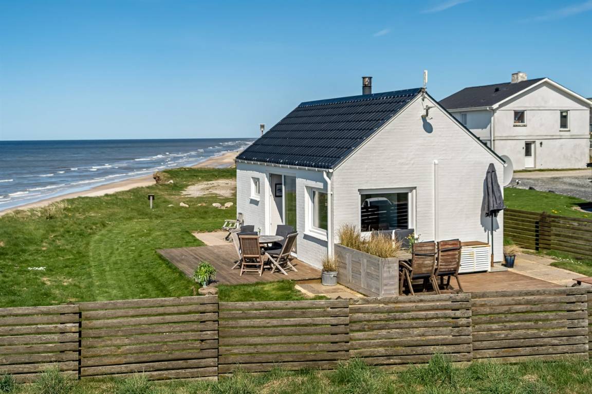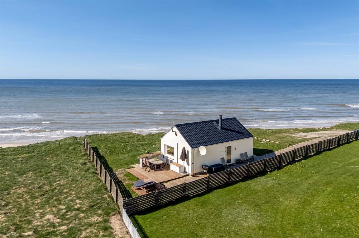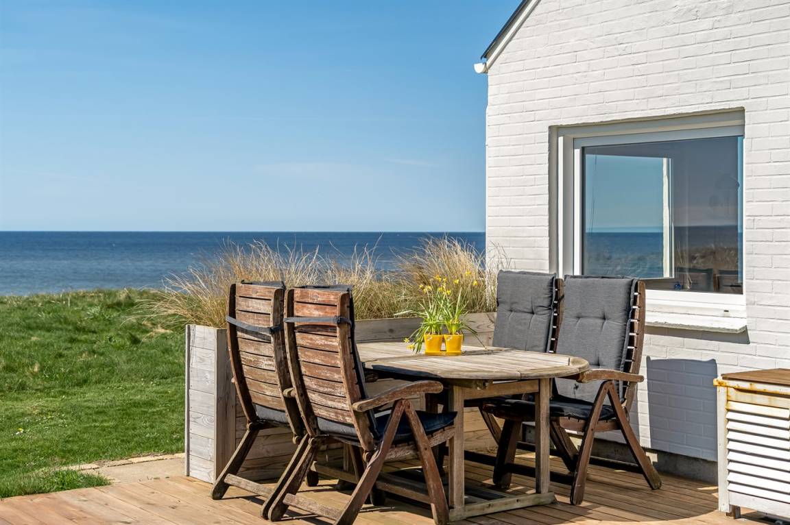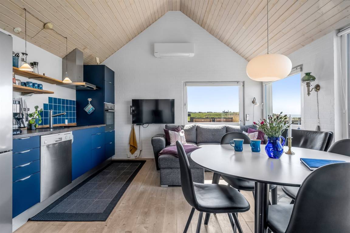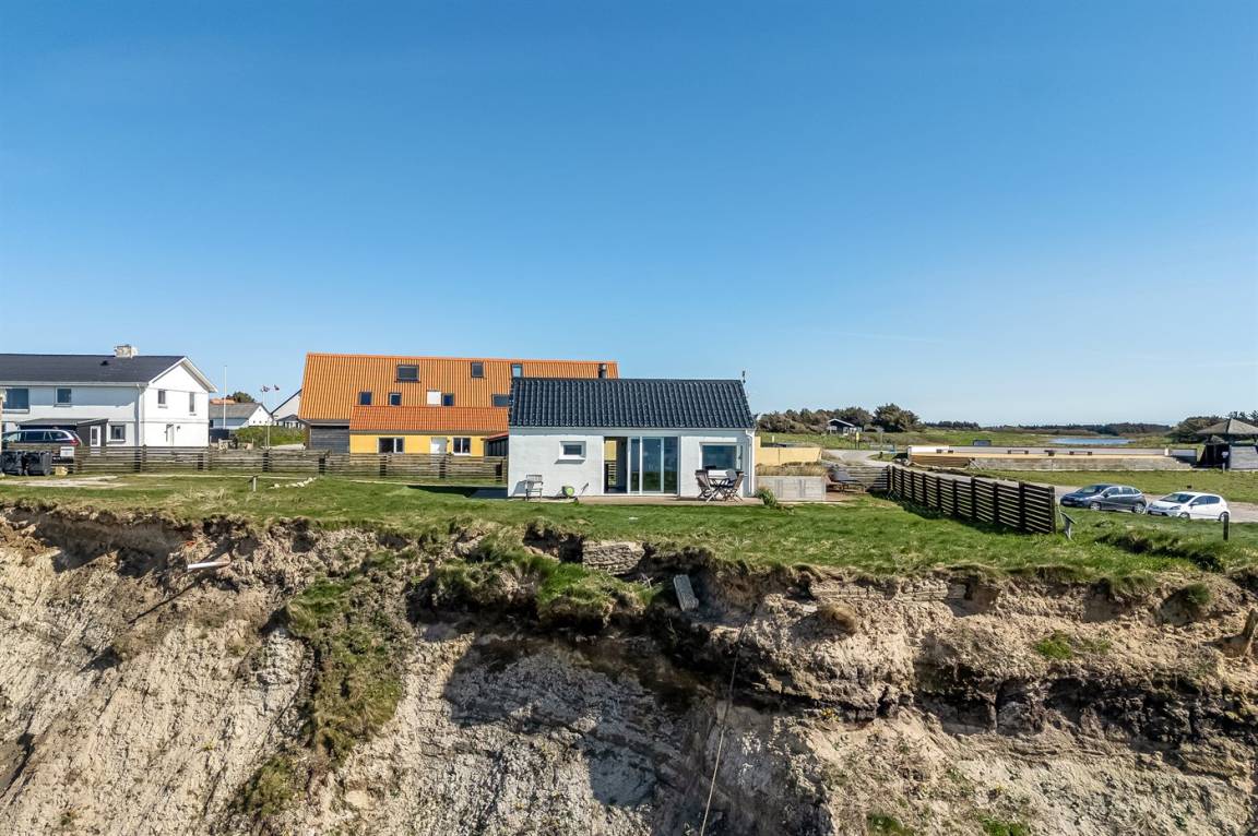 Ein einzigartig gelegenes, kleines Ferienhaus mit einem herrlichen Ausblick auf das Meer. Das Haus liegt in Nr. Lyngby – in der äußersten Reihe zum Steilhang hinaus. Zum Haus gehören 3 Terrassen und eine gemütliche Lagerfeuerstelle. Übrigens: 2 der insgesamt 4 Schlafplätze befinden sich auf einer Doppelschlafcouch im Wohnzimmer.