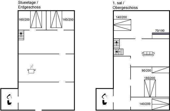 Das Ferienhaus eignet sich für 10 Personen. Die Ferienunterkunft hat eine Wohnfläche von 160 m², ist 2-stöckig, und wurde 1930 gebaut. 2013 wurde die Ferienunterkunft teilweise renoviert. Es ist erlaubt 1 Haustier mitzubringen. Fußbodenheizung im Wohnzimmer. Die Ferienunterkunft ist mit Waschmaschine ausgestattet. Wäschetrockner. Tiefkühlmöglichkeit mit 80 Liter Nutzinhalt. Für die jüngsten Feriengäste ist 1 Kinderhochstuhl vorhanden.