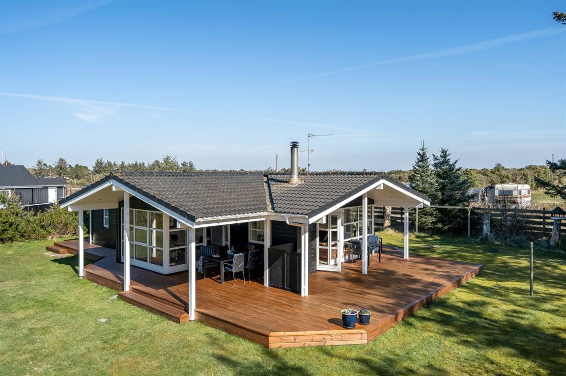 DraußenDie Ferienunterkunft liegt auf einem 1226 m² großen Naturgrundstück. Die Entfernung zum Meer beträgt 750 m. Die nächste Einkaufsmöglichkeit liegt 1200 m entfernt. Es steht ein 20 m² Terrassenareal zur Verfügung. Außerdem gibt es 30 m² überdachte Terrasse. Schaukel. Sandkasten. Rutsche. Parkplatz auf dem Grundstück.