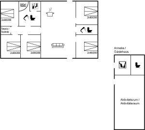 SchlafverhältnisseDie Schlafplätze verteilen sich auf 5 Schlafräume. 10 Schlafplätze in Doppelbetten. Ferner steht ein Kinderbett zur Verfügung.