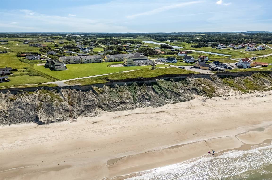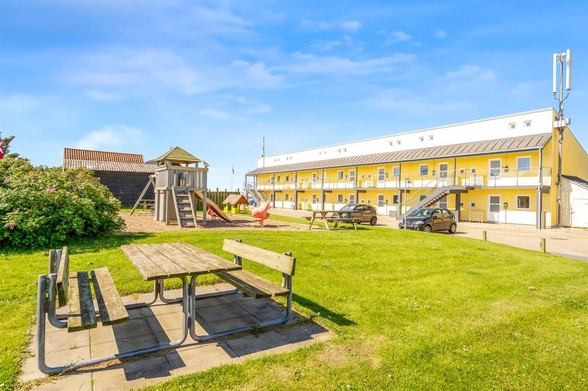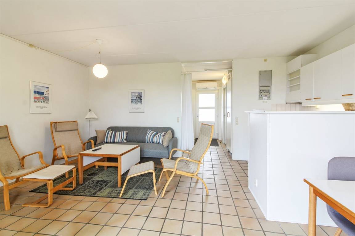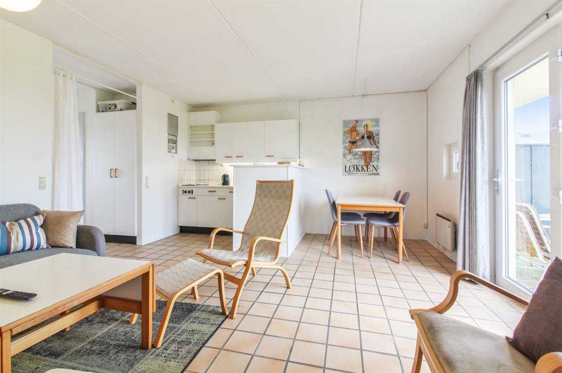 Ferienwohnung in Nr. Lyngby, ein schönes Ferienhausgebiet an der Westküste zwischen Løkken und Lønstrup. Nr. Lyngby ist für ihr Steilufer und den schönen Sandstrand bekannt. Zur Ferienanlage gehört ein gemeinsamer Swimmingpool sowie ein Kinderpool, die im Zeitraum ultimo Juni bis ultimo August benutzt werden können. Guter Spielplatz für die Kinder auf dem Gemeinschaftsareal. Im Gemeinschaftsgebäude stehen Waschmaschinen und Wäschetrockner kostenlos zur Verfügung. An den schönen Sommerabenden können Sie den Sonnenuntergang genießen. Sowohl von der Wohnung als auch vom Grundstück gibt es eine prachtvolle Aussicht über das Wasser und die Küste.
