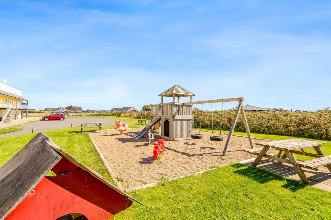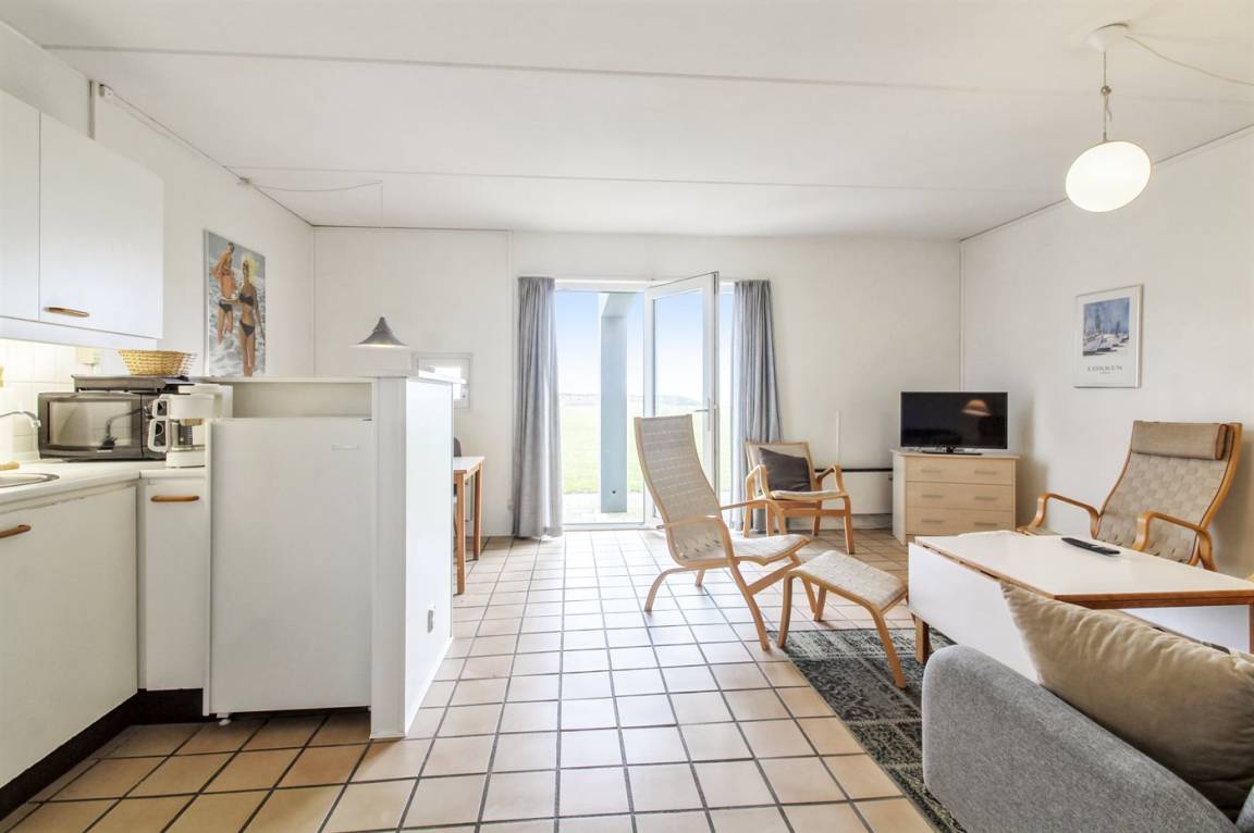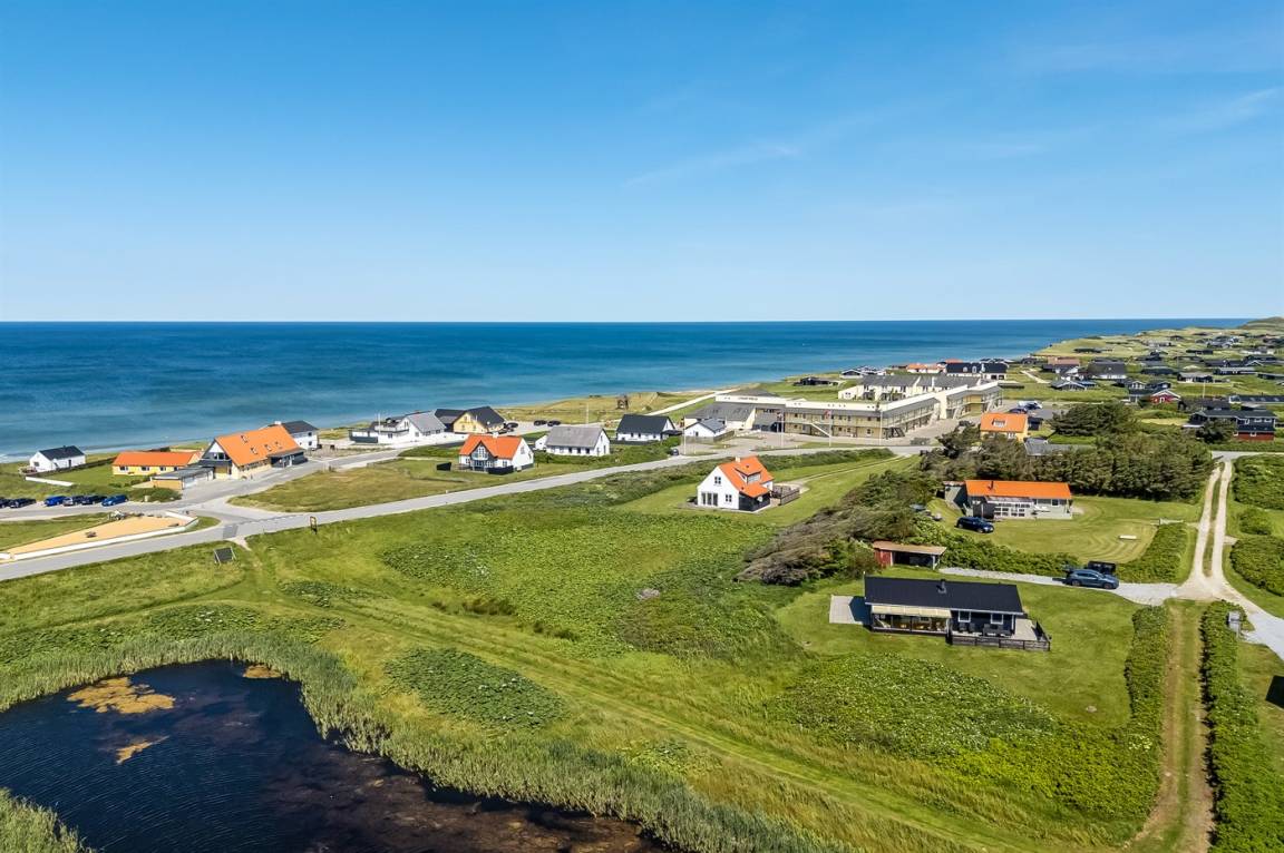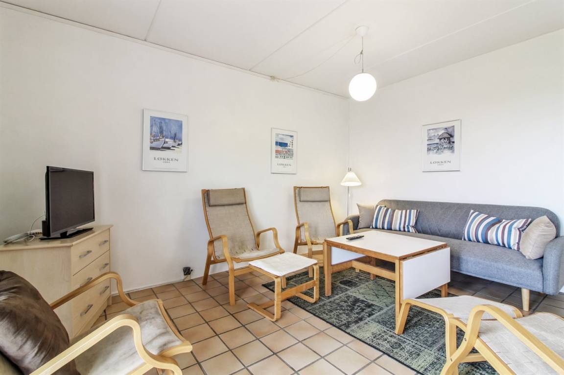 Ferienwohnung in Nr. Lyngby, ein schönes Ferienhausgebiet an der Westküste zwischen Løkken und Lønstrup. Nr. Lyngby ist für ihr Steilufer und den schönen Sandstrand bekannt. Zur Ferienanlage gehört ein gemeinsamer Swimmingpool sowie ein Kinderpool, die im Zeitraum ultimo Juni bis ultimo August benutzt werden können. Guter Spielplatz für die Kinder auf dem Gemeinschaftsareal. Im Gemeinschaftsgebäude stehen Waschmaschinen und Wäschetrockner kostenlos zur Verfügung. An den schönen Sommerabenden können Sie den Sonnenuntergang genießen. Sowohl von der Wohnung als auch vom Grundstück gibt es eine prachtvolle Aussicht über das Wasser und die Küste.