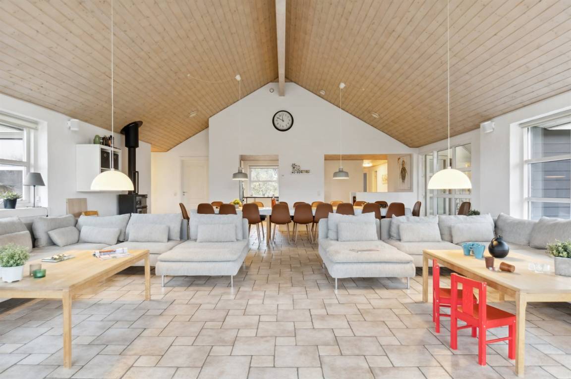 Großes geräumiges Ferienhaus mit gutem Aktivitätsangebot. Das Haus liegt in der beschaulichen Gegend Nørre Lyngby in der Nähe eines schönen Badestrands. In den Sommermonaten finden Sie hier auch ein Restaurant, ein Geschäft und einen Irish Pub. Das Haus eignet sich optimal für mehrere Familien und Generationen, die gemeinsam Urlaub im Sommerland machen wollen. Das Haus verfügt über 2 offene Obergeschosse.