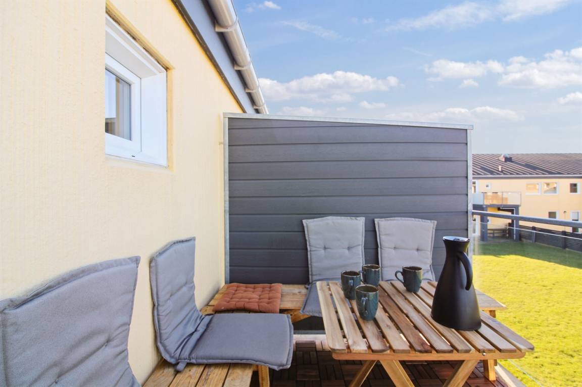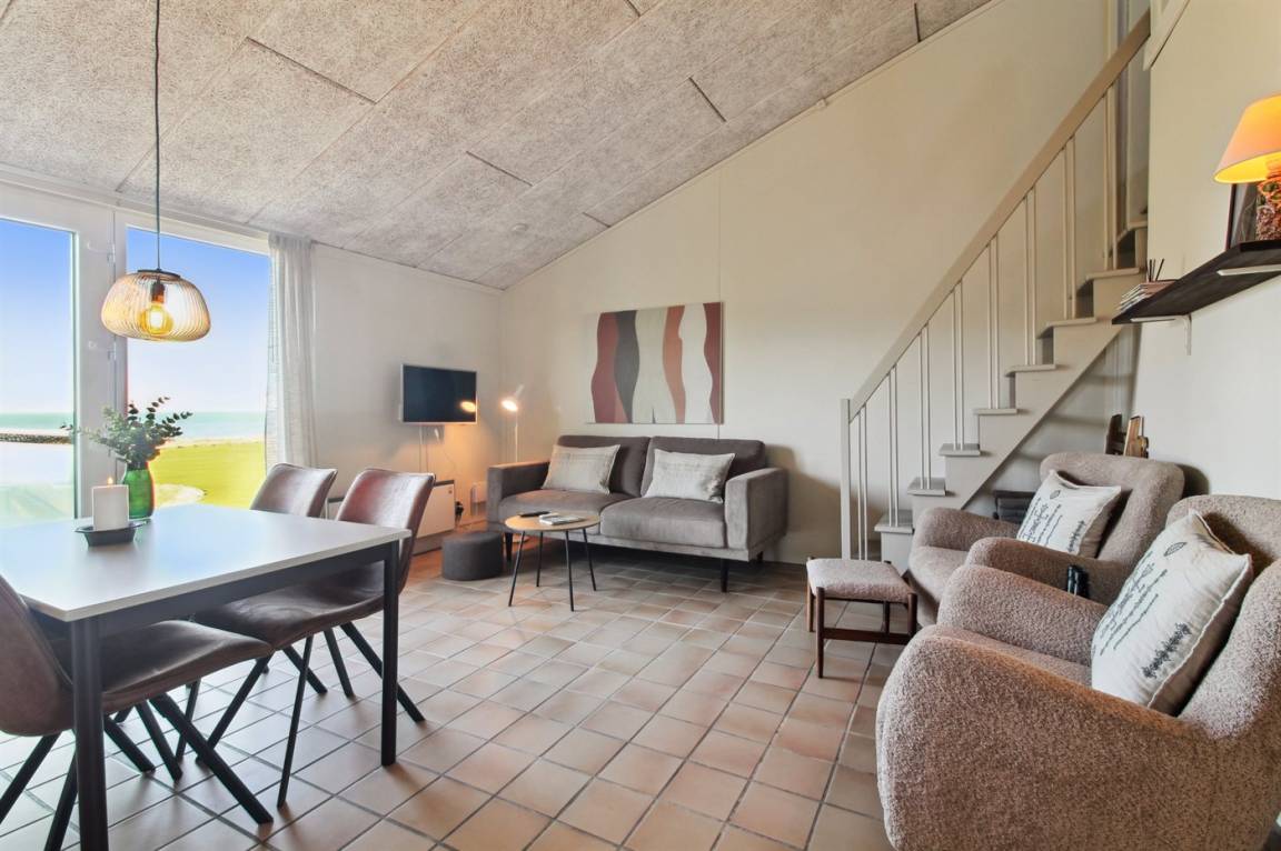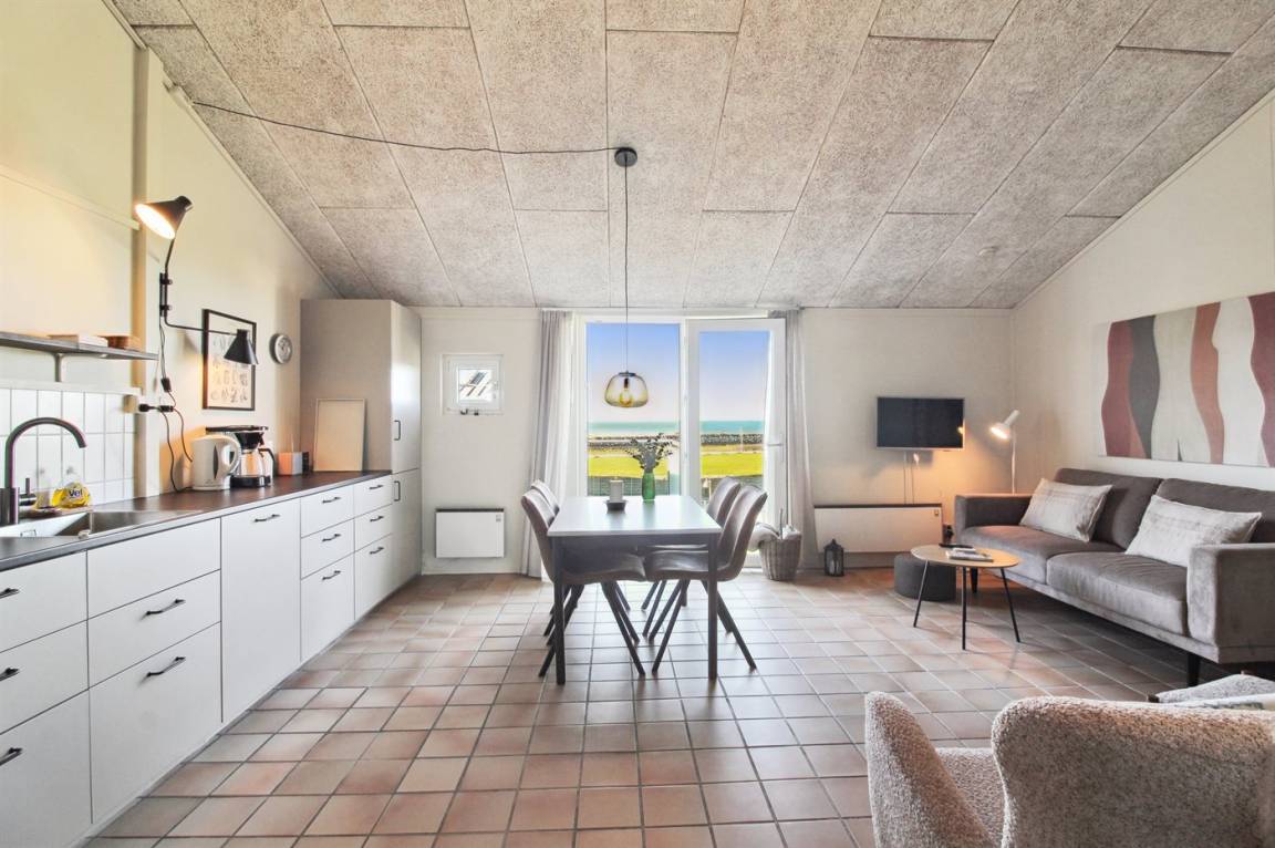 Die Wohnung befindet sich im 1. Stock. An den schönen Sommerabenden kannst du den Sonnenuntergang genießen. Vom Grundstück gibt es eine prachtvolle Aussicht über das Wasser und die Küste. Der Morgenkaffee kann auf dem Balkon in voller Sonne genossen werden, und den Rest des Tages gibt es Sonne auf der Terrasse, wo du die Launen der Nordsee in vollen Zügen genießen kannst.