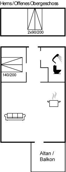 SchlafverhältnisseEs gibt einen Schlafraum. 2 Schlafplätze in einem Doppelbett. 2 Schlafplätze auf Matratzen. 2 von diesen Schlafplätzen befinden sich im offenen Obergeschoss.